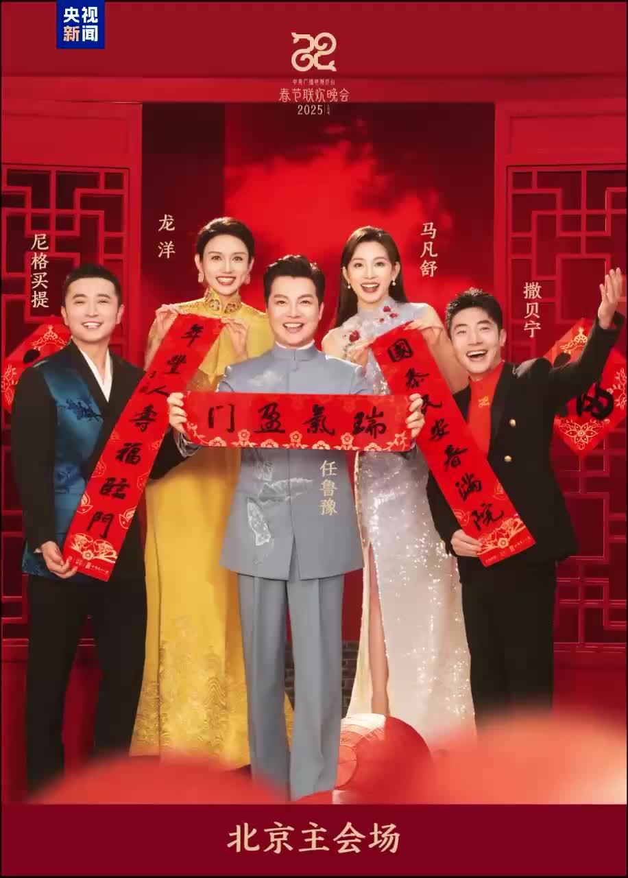 中央广播电视总台《2025年春节联欢晚会》发布主持人阵容。北京主会场主持人为任鲁豫、撒贝宁、尼格买提、龙洋、马凡舒。四个分会场主持人阵容>>