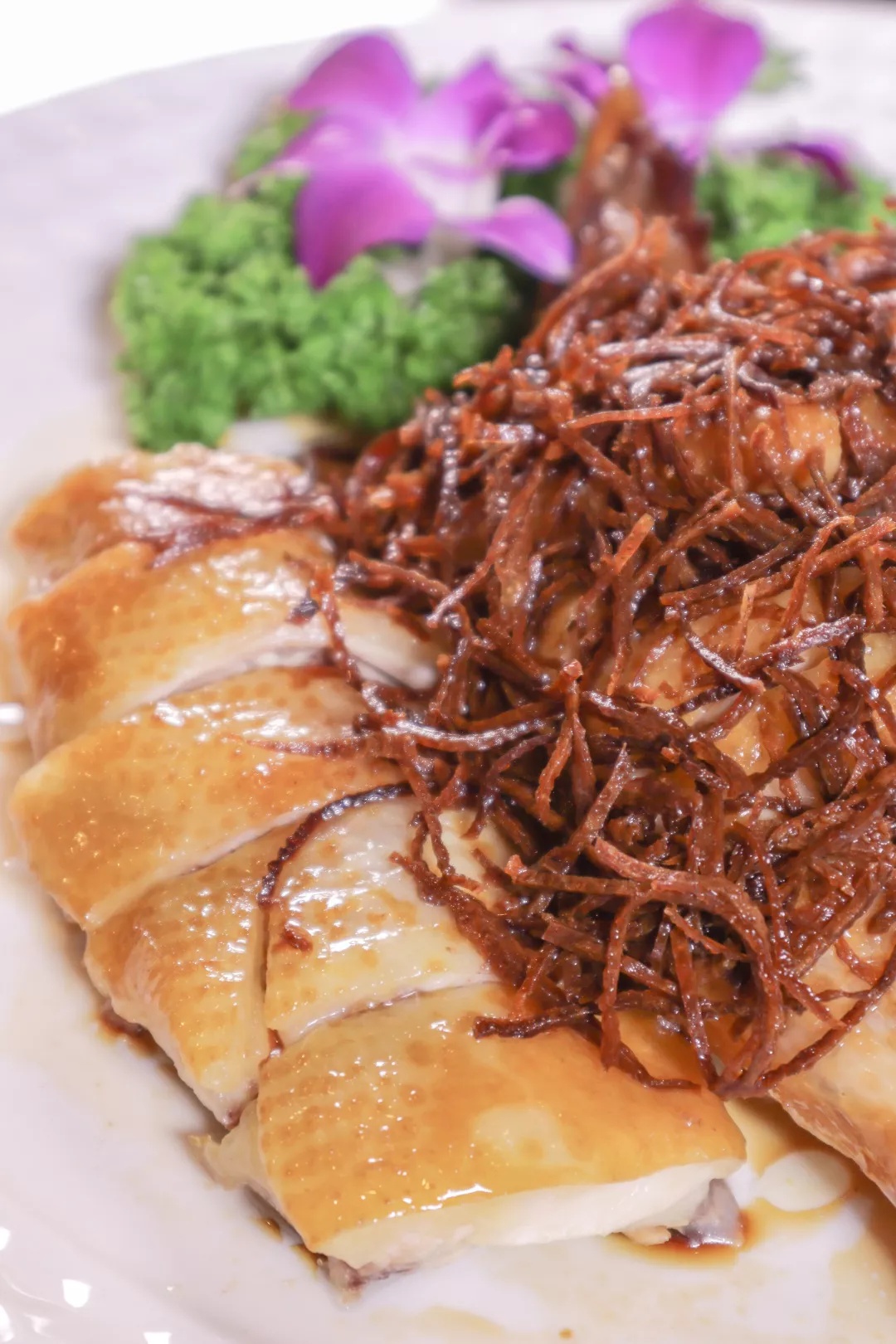 而在新会区古井镇,还有一张饮食名片更是名扬至港澳甚至海外,那便是古井烧鹅。古井烧鹅选用广东四大名鹅之一的开平马冈鹅,用宋朝延续下来的宫廷烧鹅做法,使得烧鹅肉嫩爽口、鲜香多汁、齿颊留香。