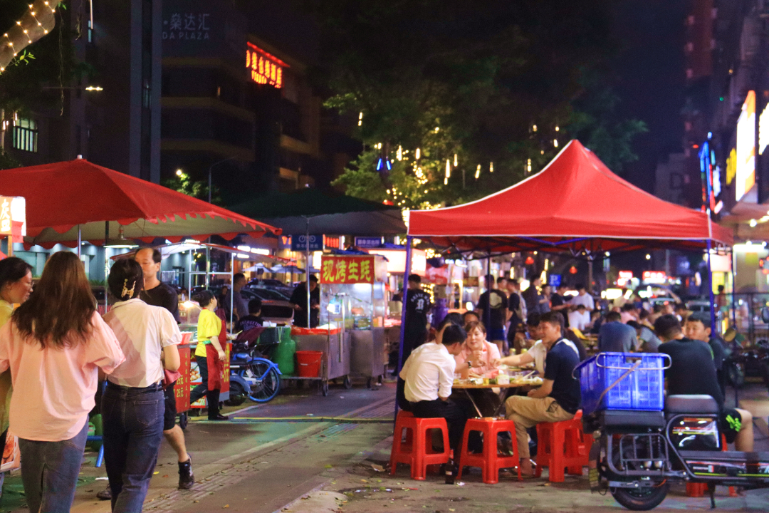 在新湖路的大排档夜市里,来自五湖四海的美食齐聚一“街”。浓香鲜甜的砂锅粥,清润脆滑的椰子鸡,麻辣鲜香、爽嫩Q弹的肥肠牛蛙……热闹的夜市街把白日的烦恼洗净,把普通的夜点缀得有滋有味。