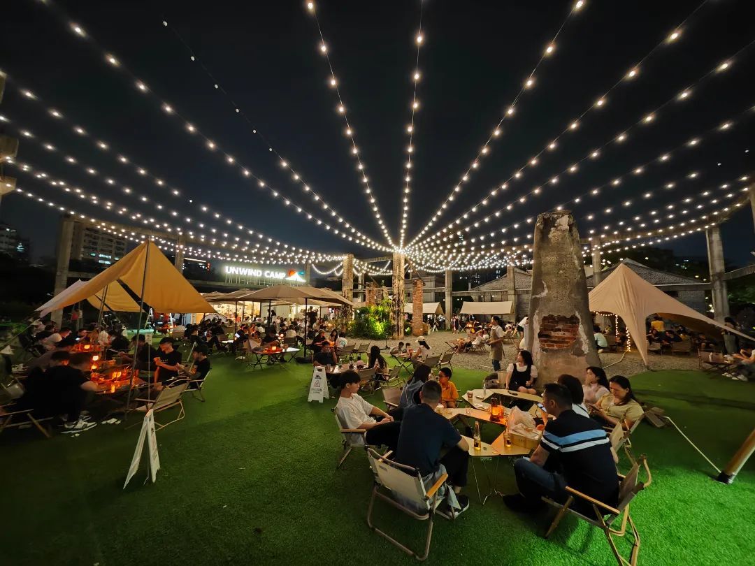 在这里,无需翻山越岭,天幕、露营椅、大银幕、小吧台和一份份夜市小吃、冰爽饮品,就能让你感受到,这座城市的专属夜趣。