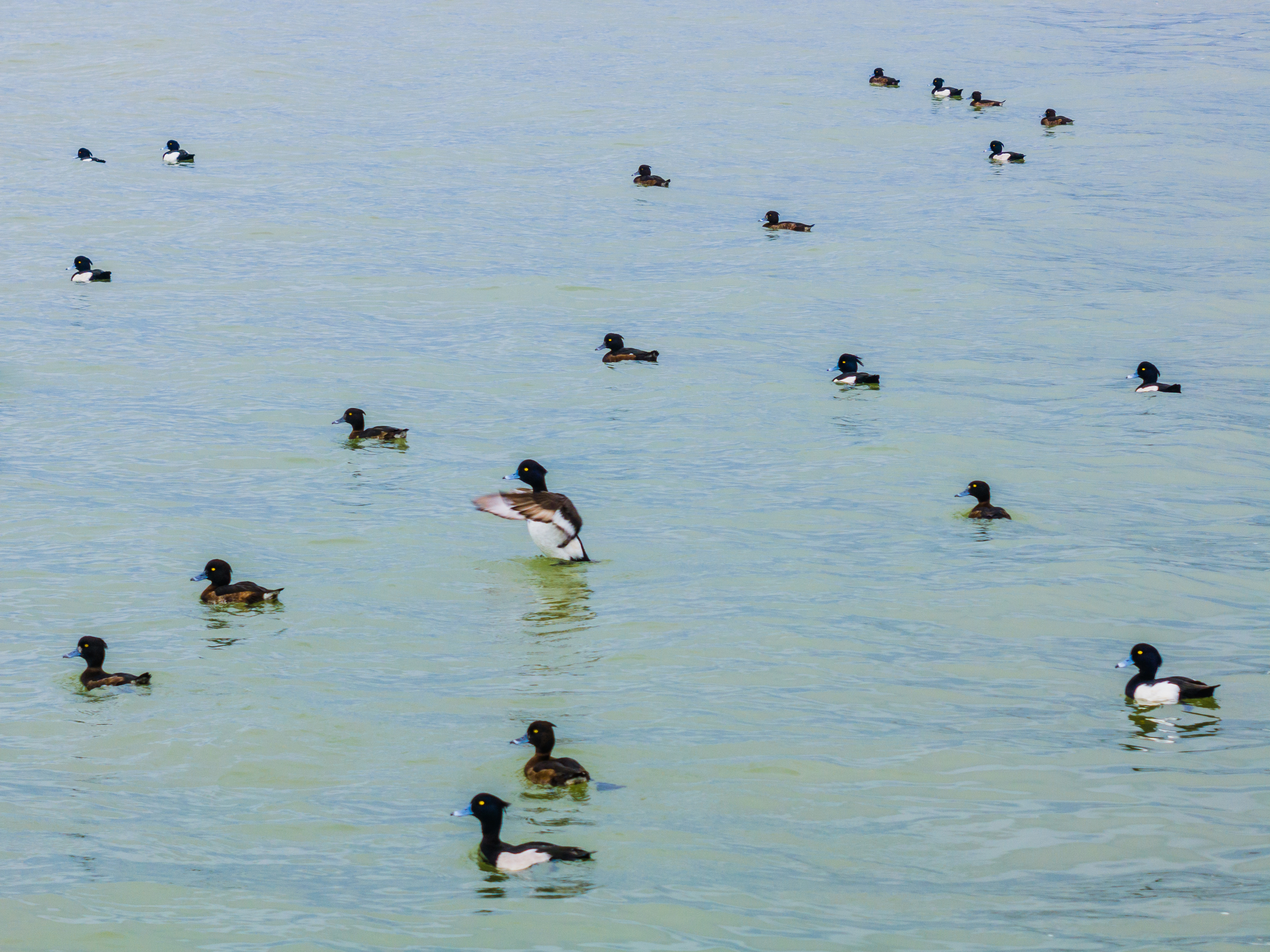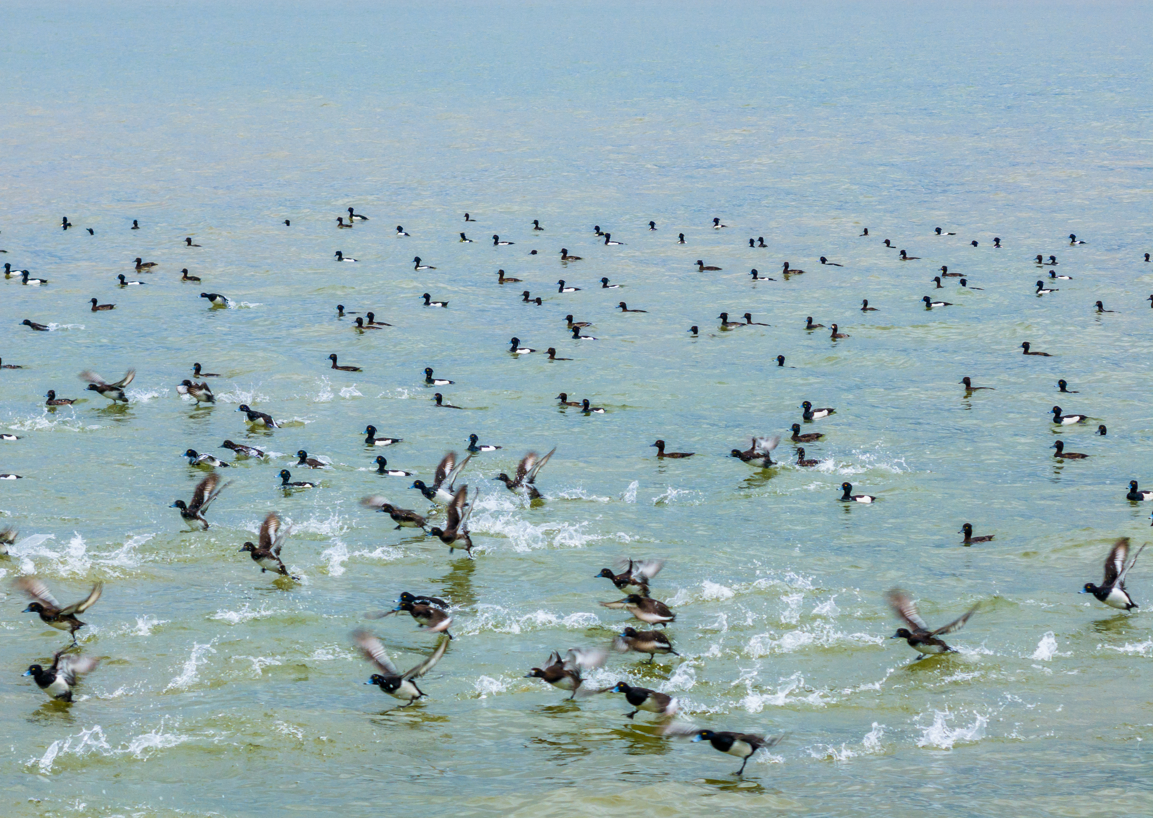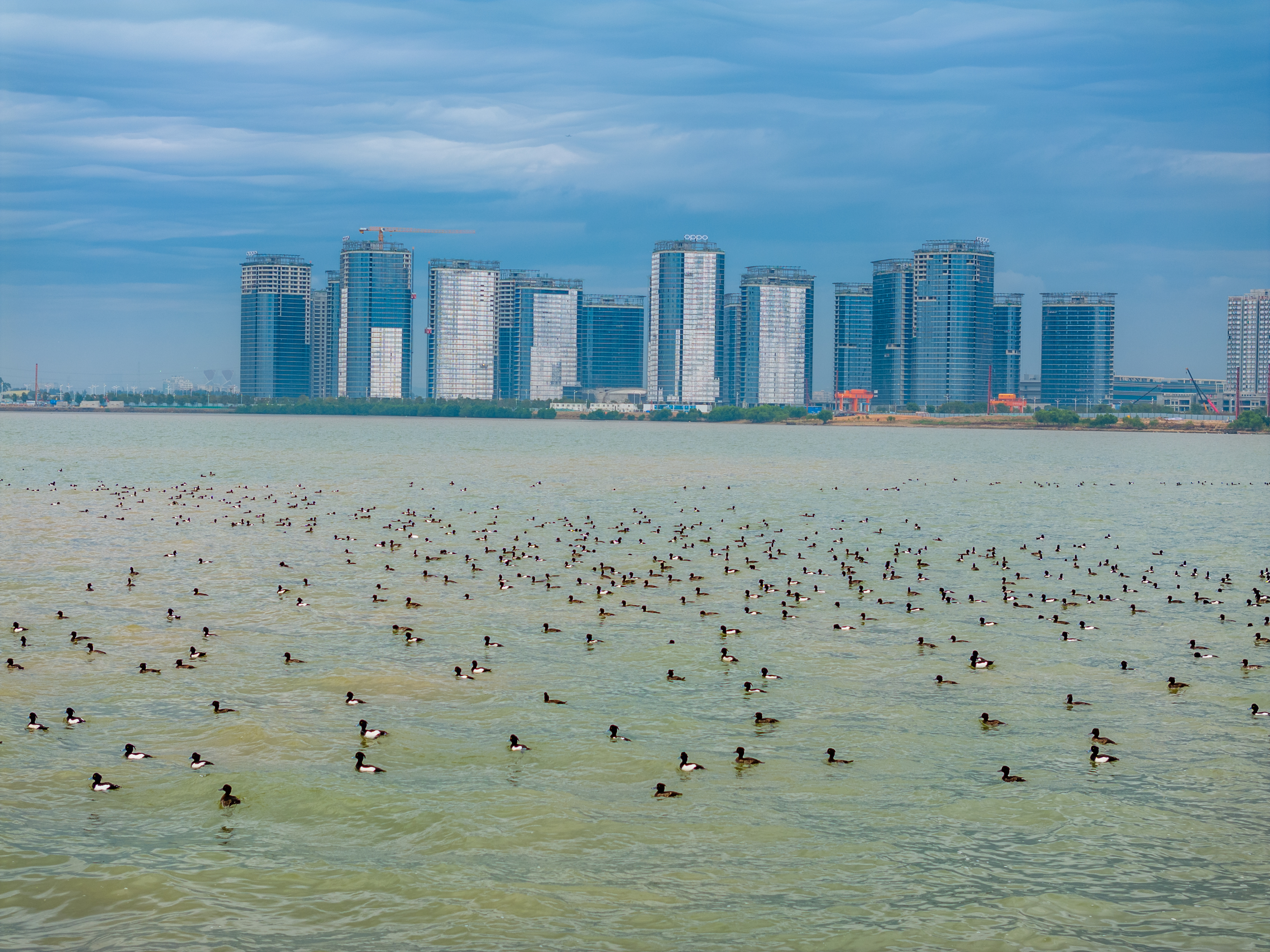 3月,成群的凤头潜鸭出现在滨海湾近海水域上