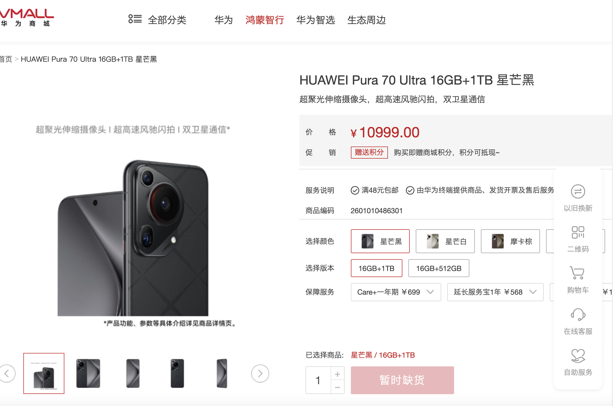 刚刚,在上午10:08分,备受关注的Pura70(即P70)系列手机突然上架华为商城,售价5499元起,打了众人一个“措手不及”。许多网友还未反应过来,就发现手机已全面售罄。