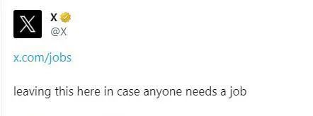 随后,马斯克旗下社交平台“X”在官方账号挂出“求职申请链接”,并配文“以防有人需要”。