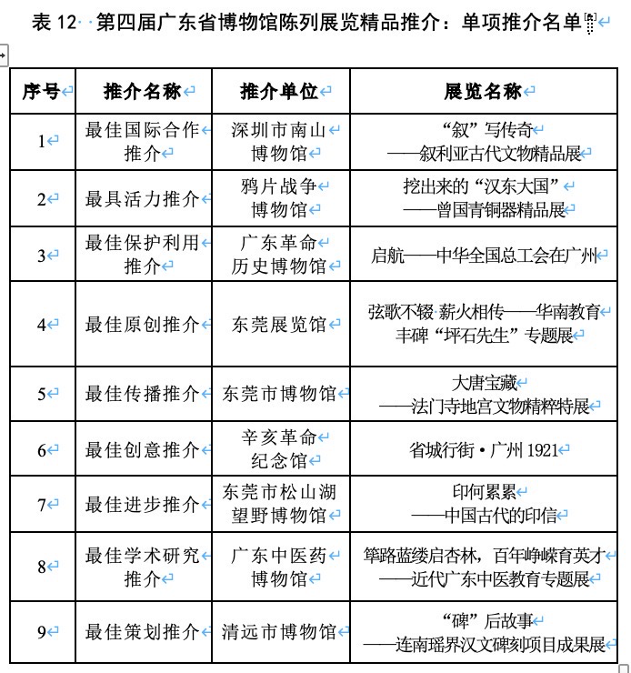 第四届广东省博物馆陈列展览精品推介:单项推介名单