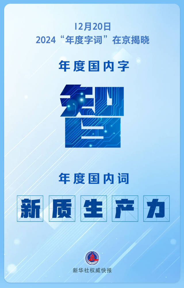 “汉语盘点2024”活动12月20日在京举办,揭晓2024“年度字词”,年度国内字为“智”,年度国内词为“新质生产力”。详情>>