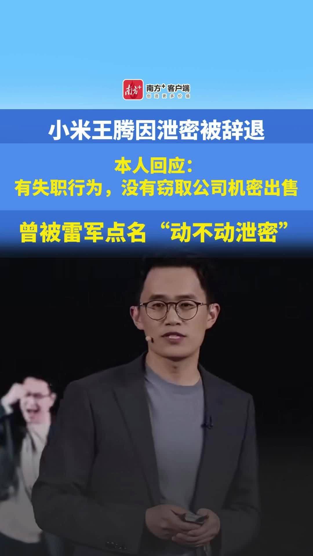 被小米辞退后王腾辟谣:没有窃密没有收人钱财