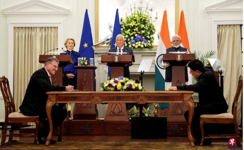 此次峰会中,最受瞩目的是印欧宣布达成的自由贸易协定。该协定历经近20年磋商与14轮正式谈判,不仅是印度史上规模最大的自贸协定,更是欧盟与第三国签署的最全面的贸易协议。