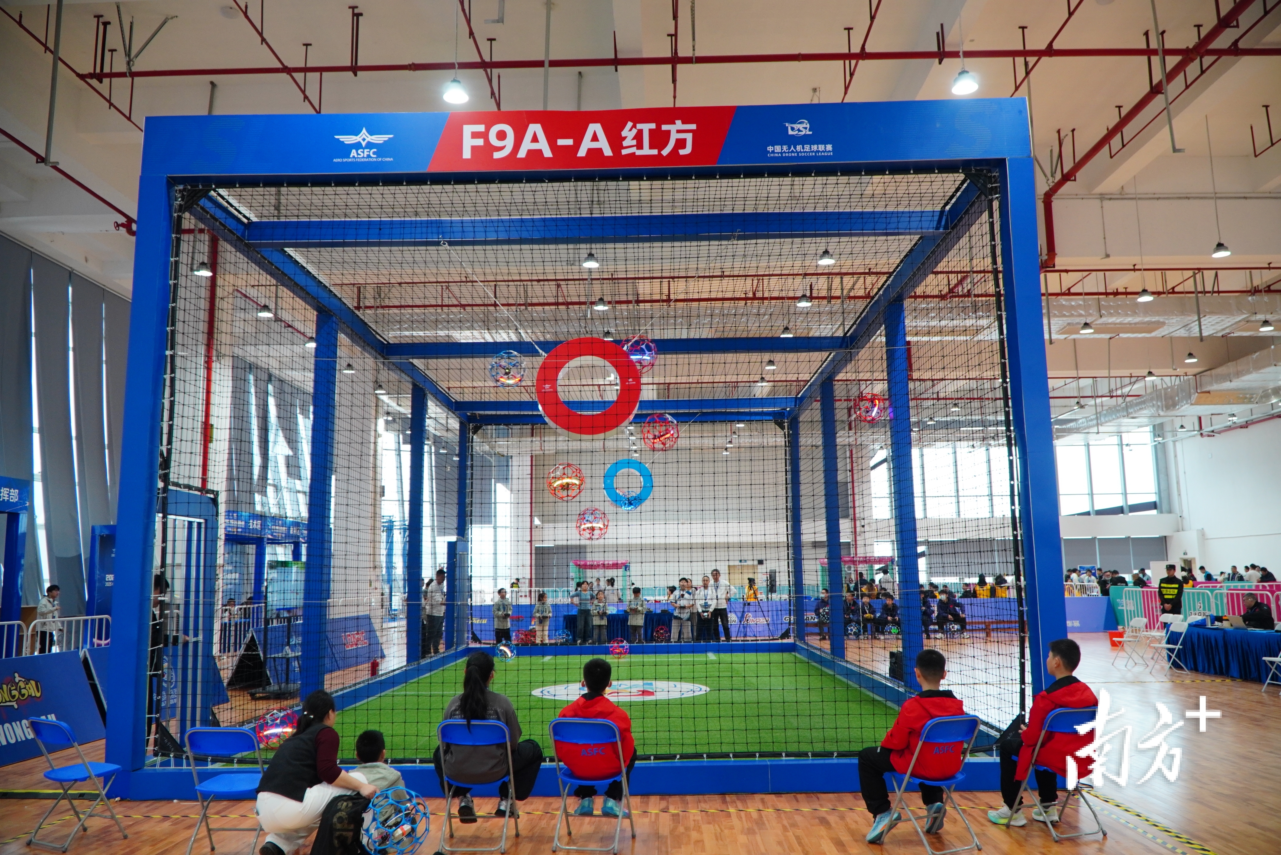 比赛分设F9A-A(无刷动力400直径无人机足球)、F9A-B(无刷动力200直径无人机足球)、F9A-C(有刷动力100直径无人机足球)三个竞技项目。赛场之上,选手们凝神操控、默契配合,无人机灵活穿梭、精准拦截,一次次凌空射门点燃全场热情,每一个精彩瞬间都引来全场阵阵欢呼。