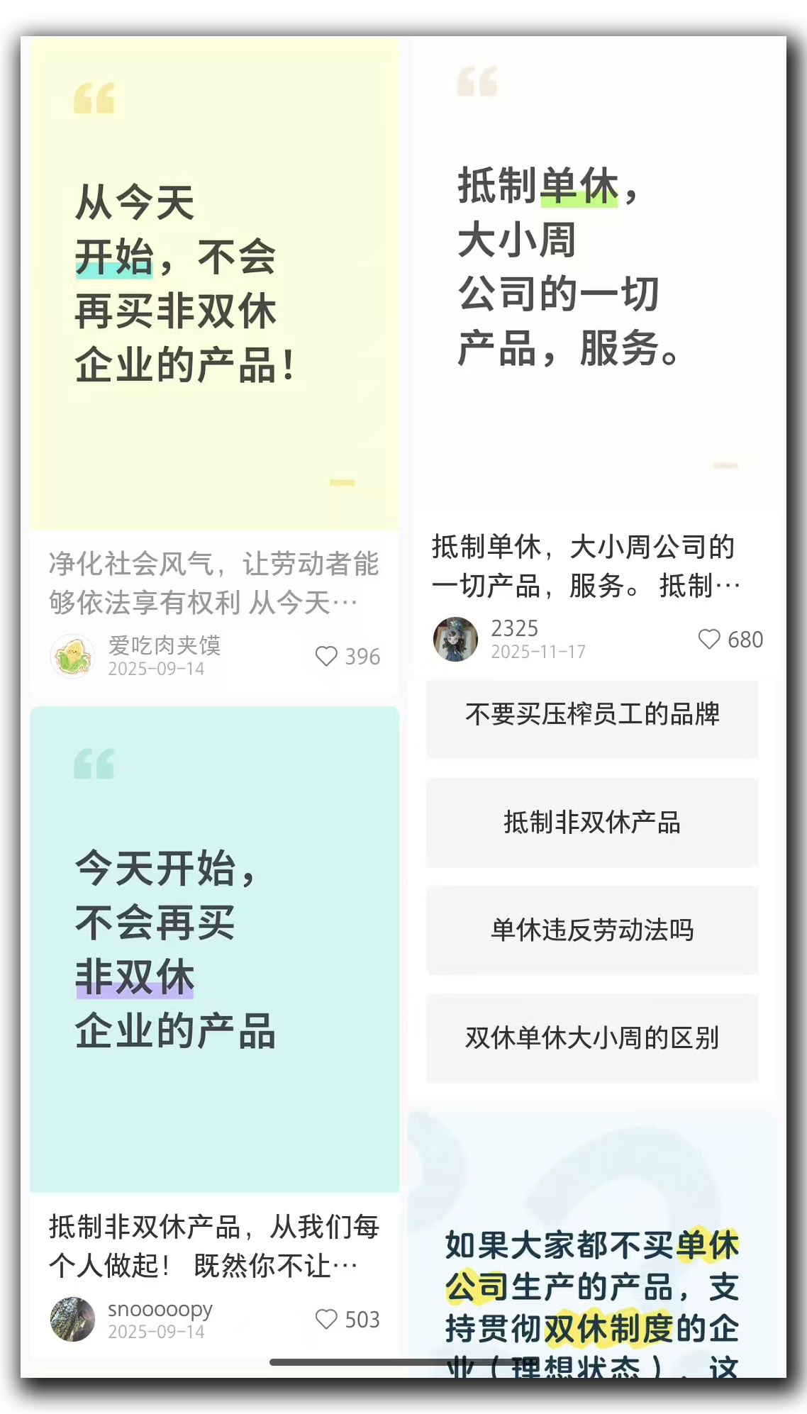 越来越多的年轻人开始发起“不买非双休企业服务与产品”的行动。