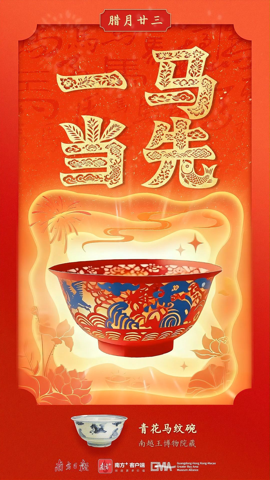 从腊月廿三(2月10日)至正月初八(2月24日),大湾区珍宝们将陆续走出文物库房,送上马年限定新春祝福!敬请垂注。