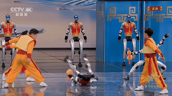 2月16日,除夕,宇树科技作为春晚机器人合作伙伴,与河南塔沟武术学校共同带来去年《秧BOT》的升级版武术表演节目《武BOT》。