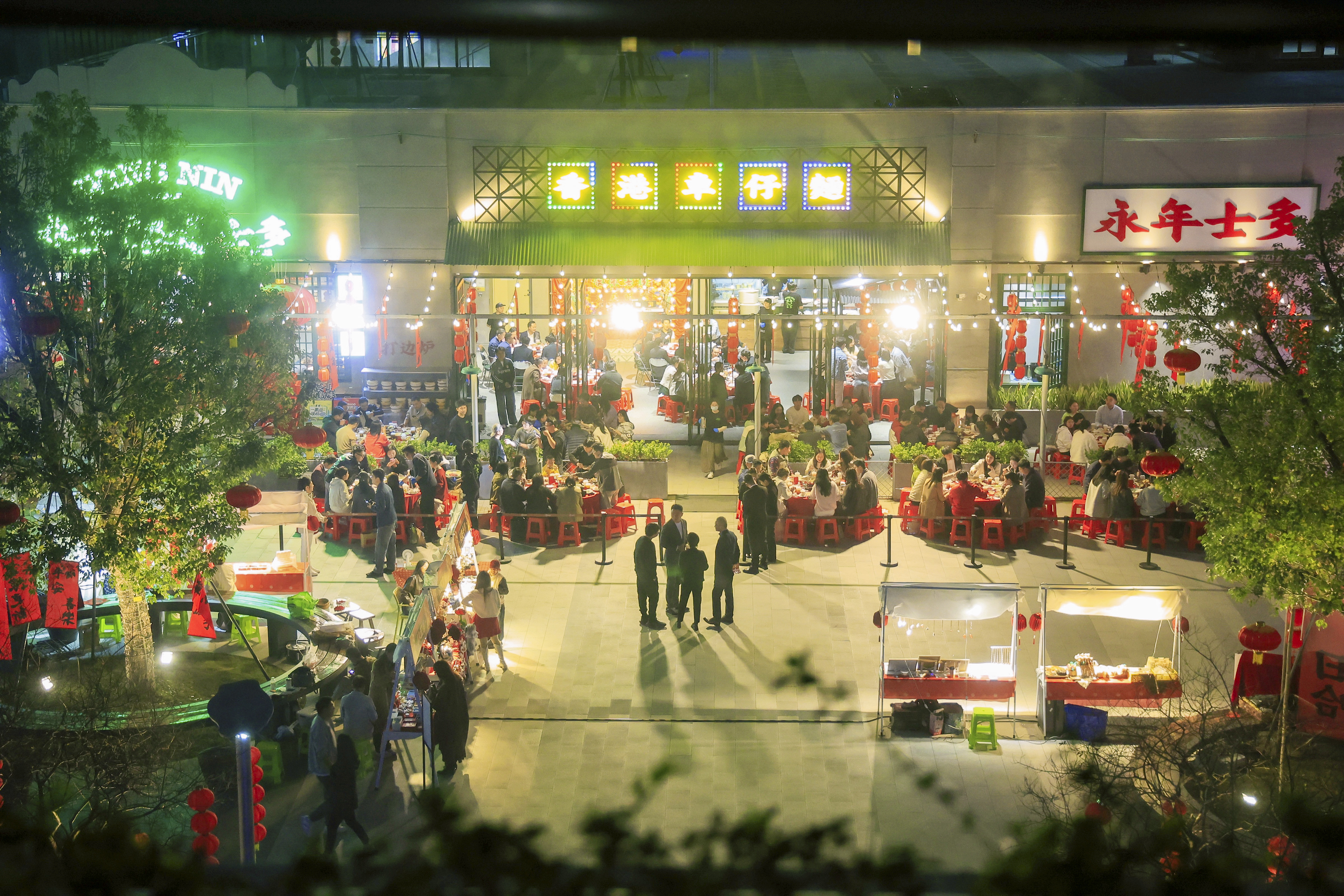 “你看香港印象这一片,有钟楼,有叮叮车,有李小龙铜像。”他说,“鸡蛋仔、烧鹅濑粉、港式奶茶,什么都有。我来到内地,也能吃到香港的味道,就像回到第二个家。”