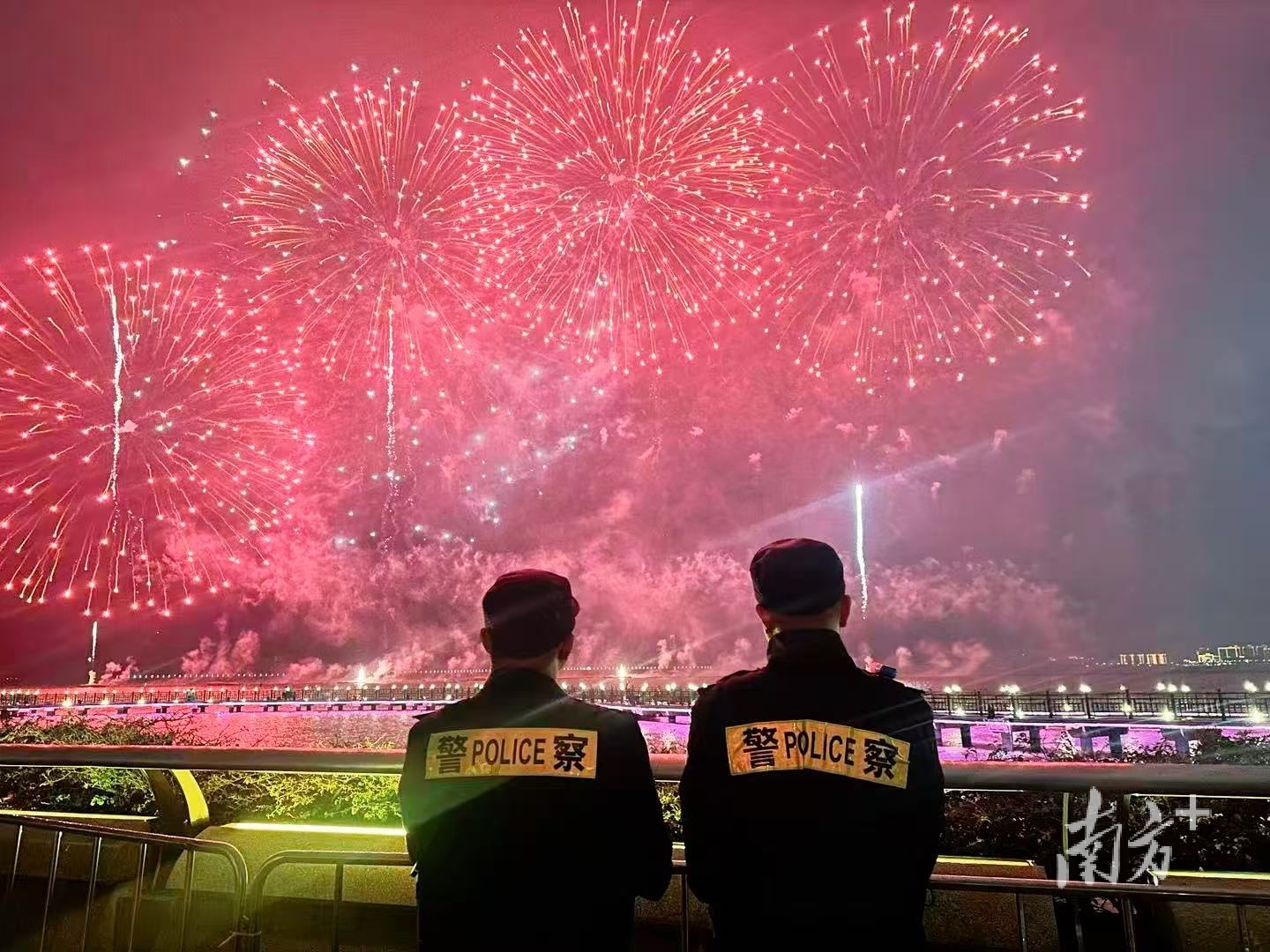 “快看!烟花来了!”在一阵阵惊呼声中,万千礼炮齐鸣,璀璨的花弹呼啸着划破长空,在品清湖上空竞相绽放。