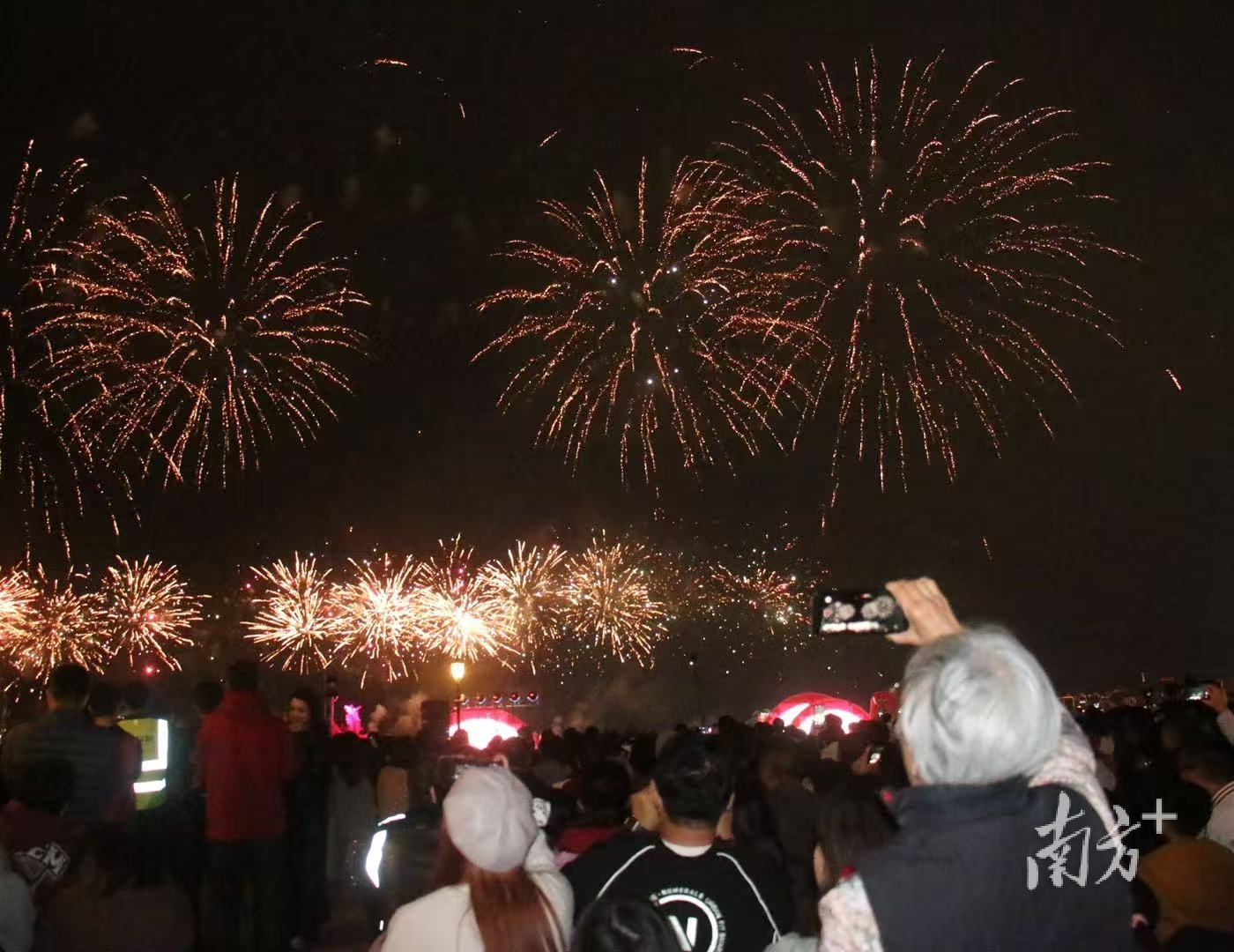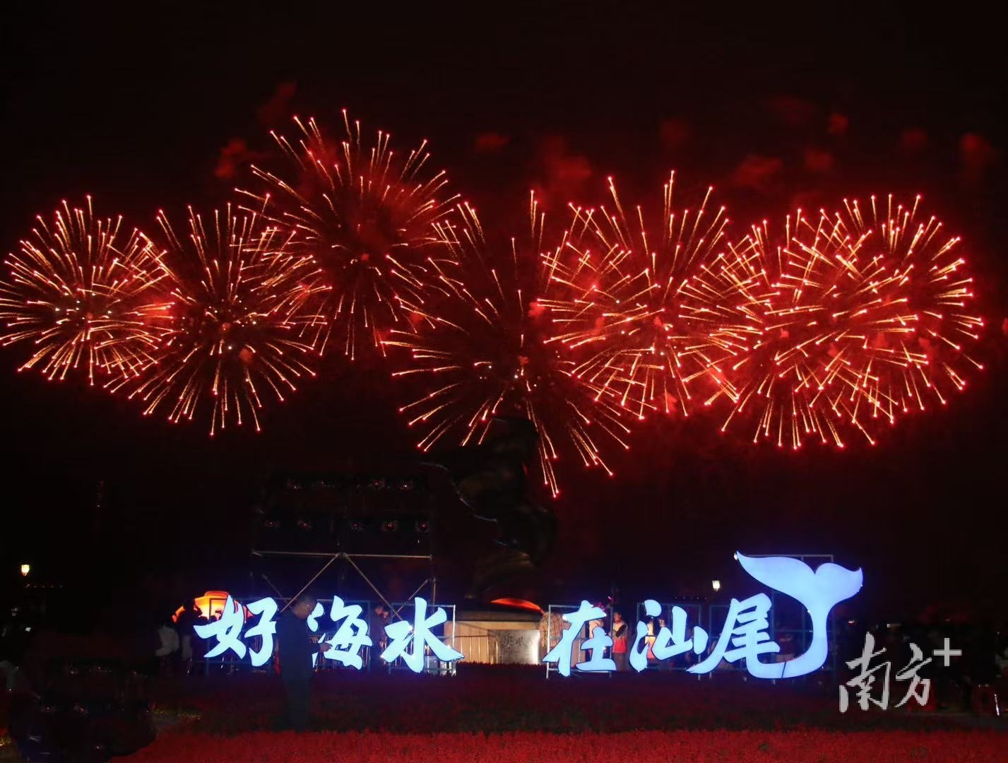 “无人机跟着烟花变换造型,这在汕尾还是第一次看到,非遗味儿和现代科技感都有了,朋友们都抢着发朋友圈,心里满是对家乡的自豪!”返乡大学生小刘说,传统与现代结合的呈现方式,精心编排的汕尾文化和物产元素,让整场盛会既有“颜值”更有“内涵”。