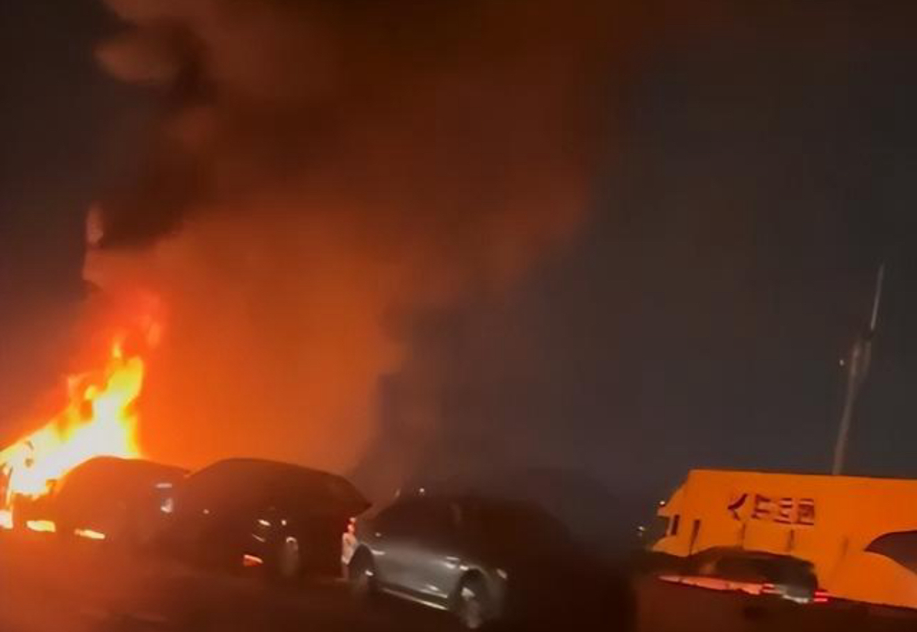 3月22日晚,广深沿江高速东莞段发生交通事故,现场火光冲天、浓烟弥漫,两辆涉事车辆被大火焚烧殆尽,仅剩铁架。