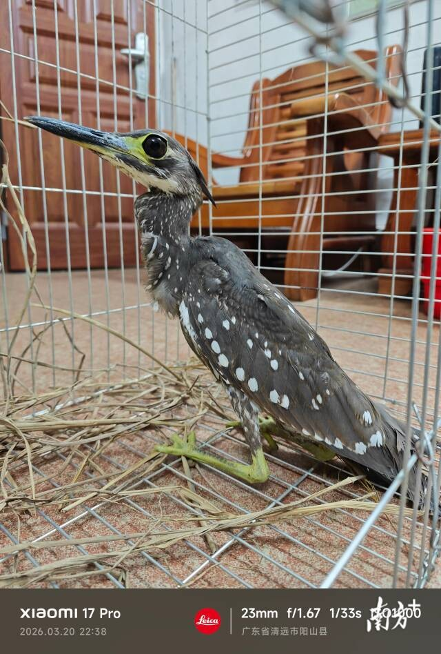 A rare bird classified as a national first-class protected species, often called the "world's most mysterious bird," was recently rescued in Yangshan County and transferred to the Qingyuan Wildlife Rescue Center for care.