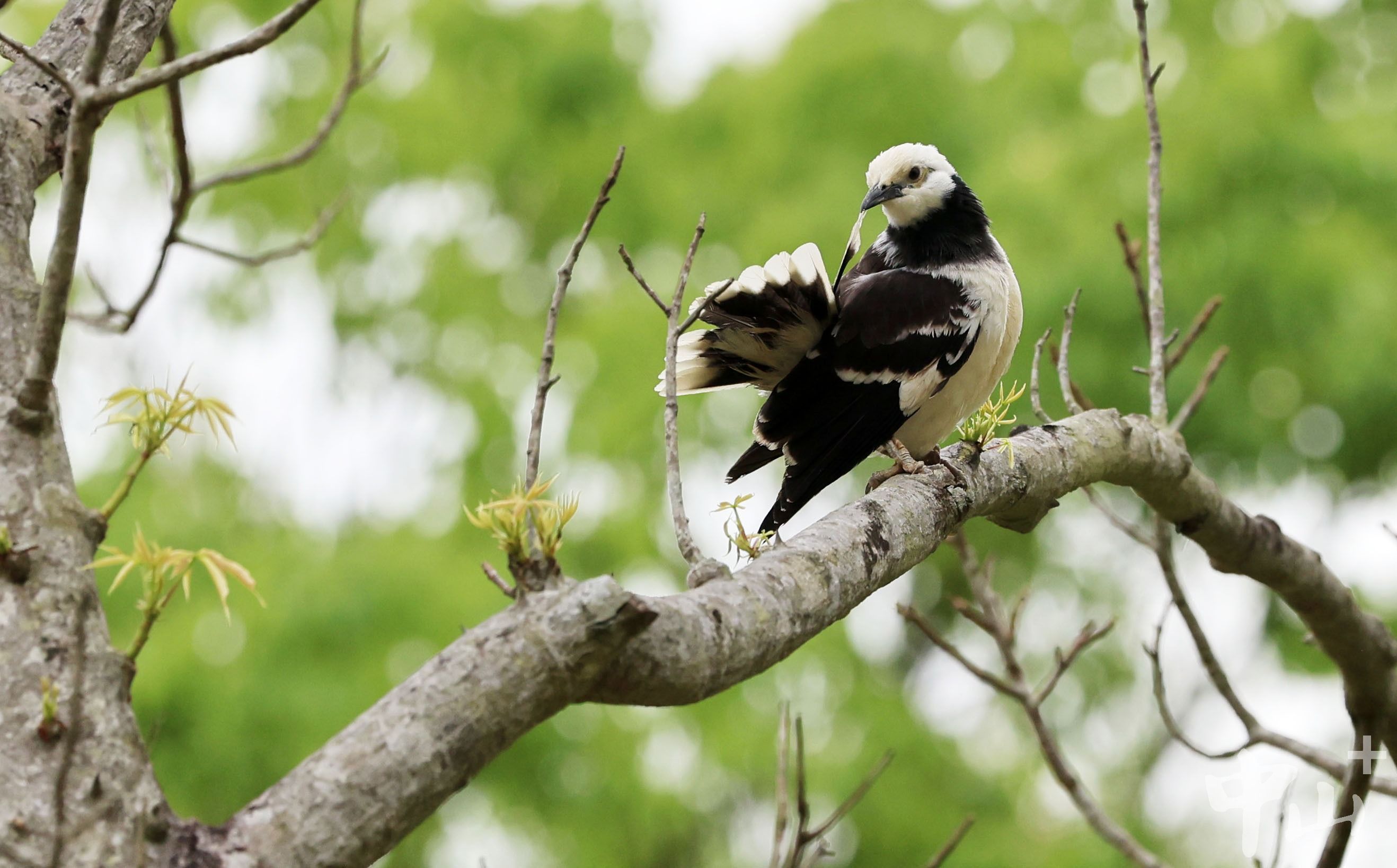 回归自然怀抱的鸟在大树枝头栖息。