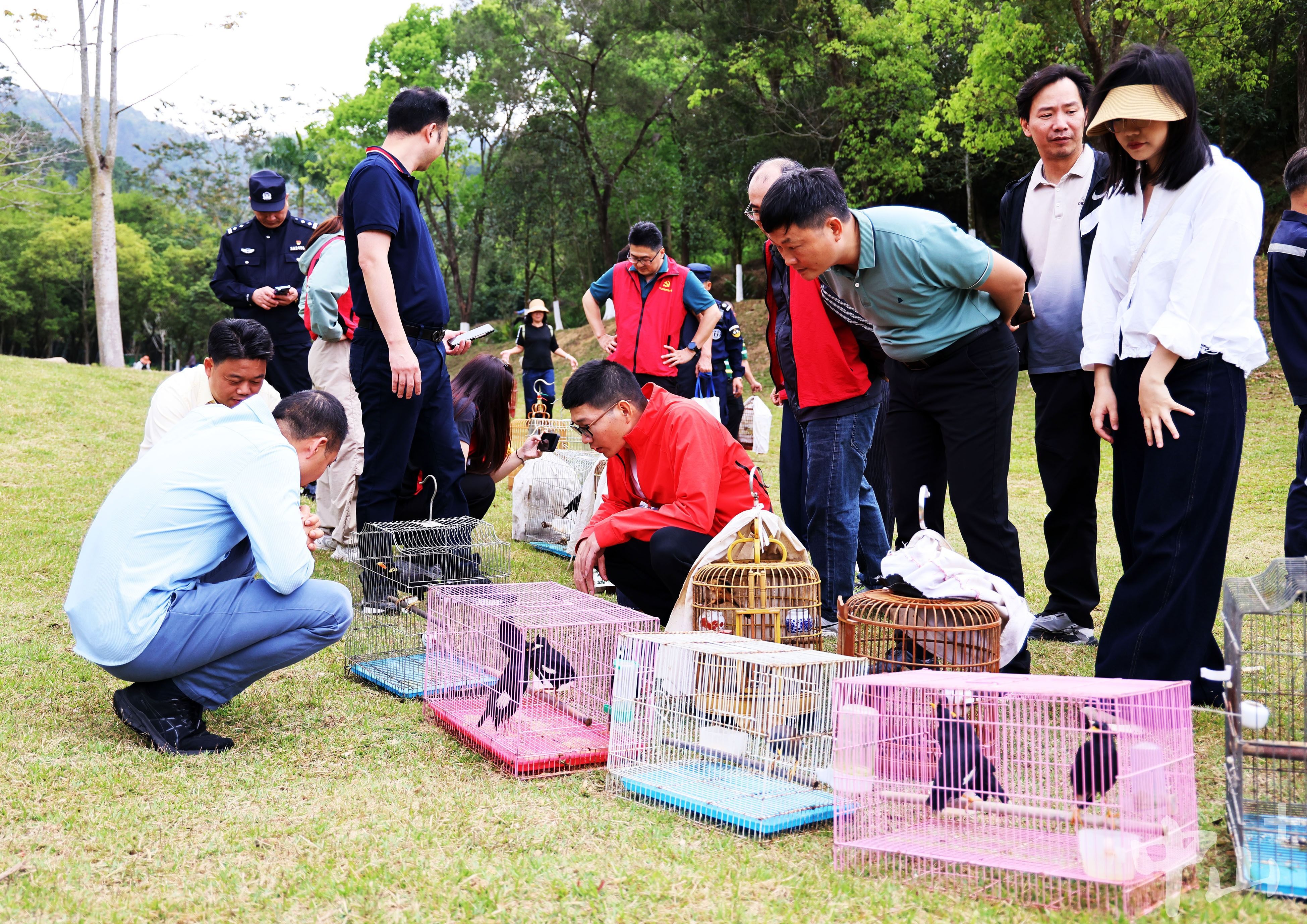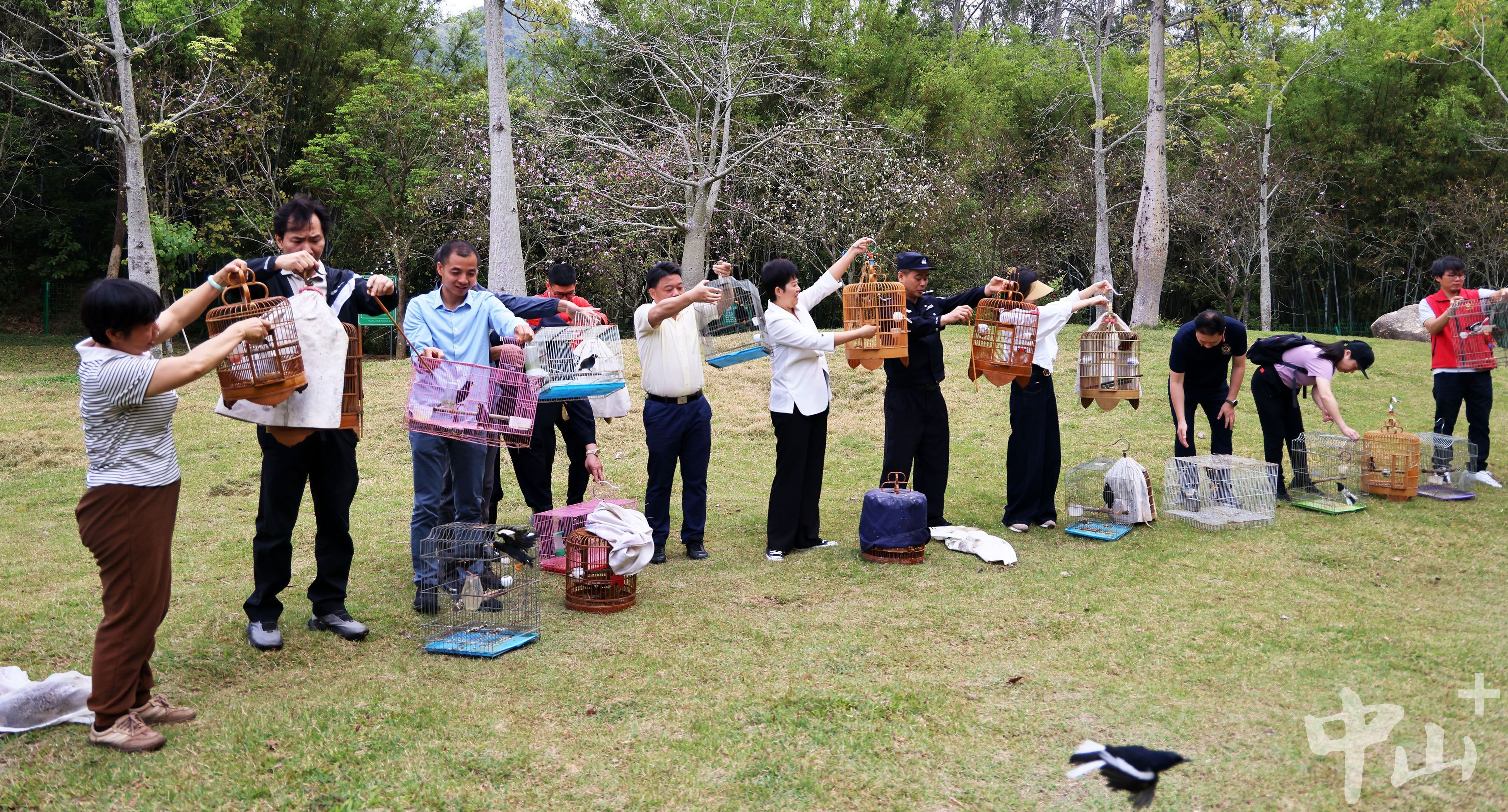 参与活动人员纷纷拿起鸟笼,准备放飞。