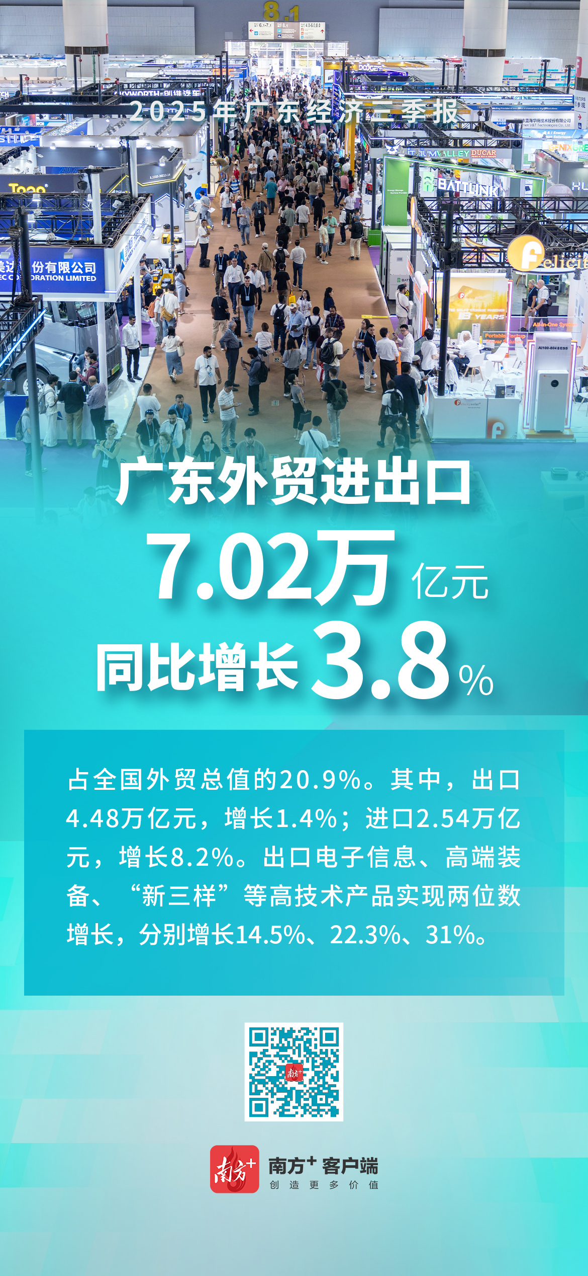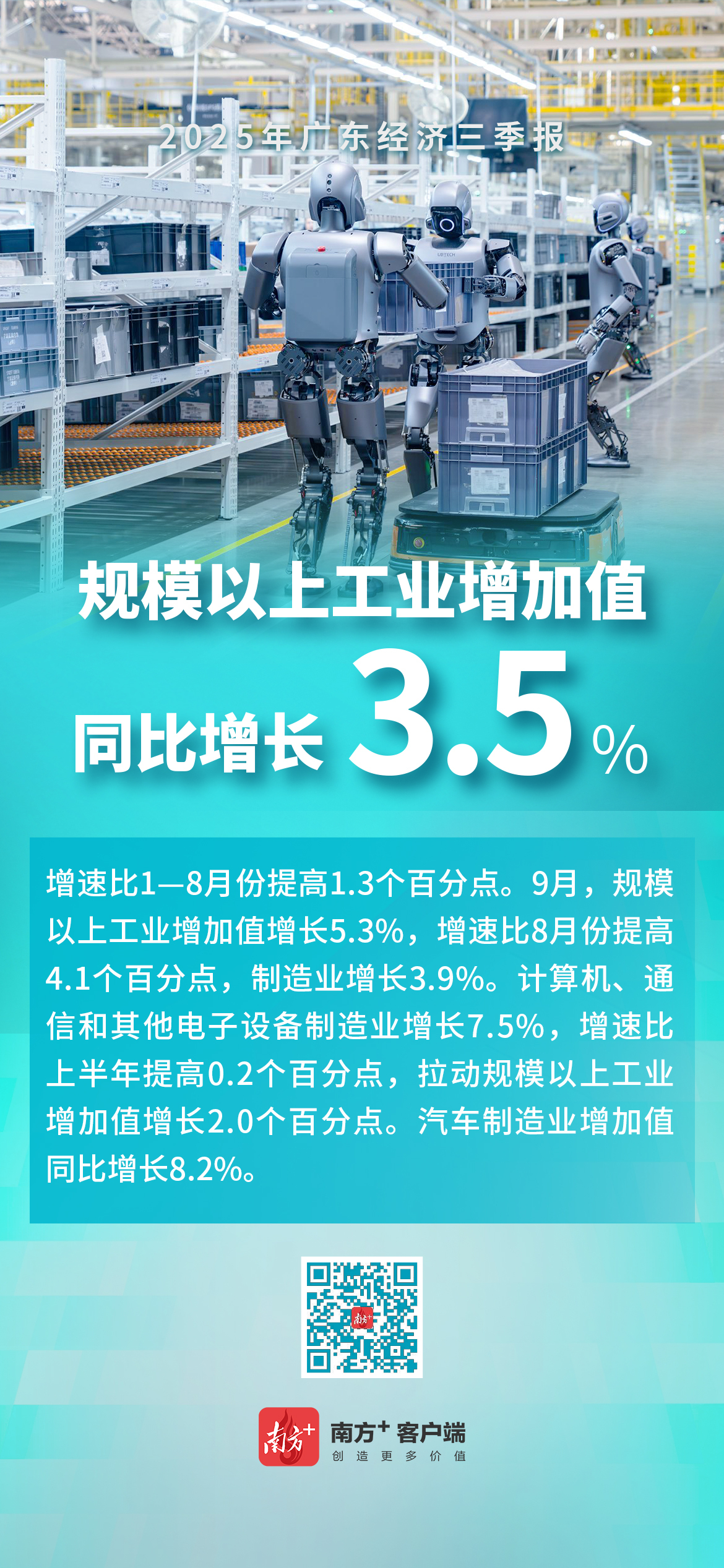 前三季度,广东经济顶压前行,运行总体平稳、稳中有进,生产供给平稳增长,就业物价总体稳定,新动能持续壮大,民生保障有力有效,高质量发展取得新进展。