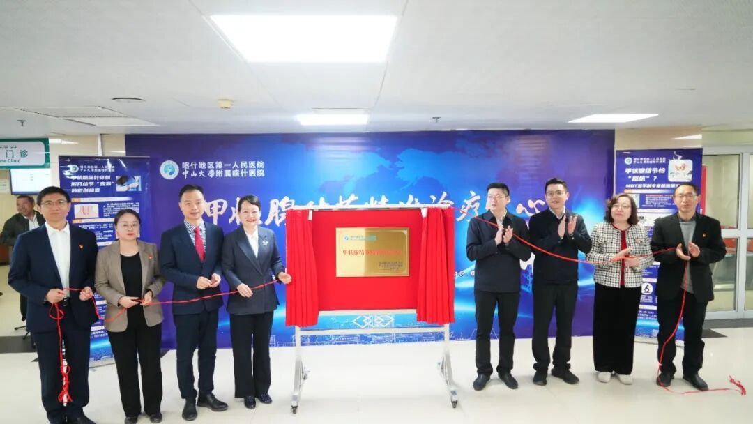 10月24日,南疆首个甲状腺结节精准诊疗中心在喀什地区第一人民医院(以下简称“喀地一院”)正式揭牌,为南疆各族群众提供“一站式”精准诊疗服务,提高就医便利和健康质量。广东援疆前方指挥部副总指挥林锡江,喀地一院党委书记张新苗、院长肖非等相关负责人出席揭牌活动。