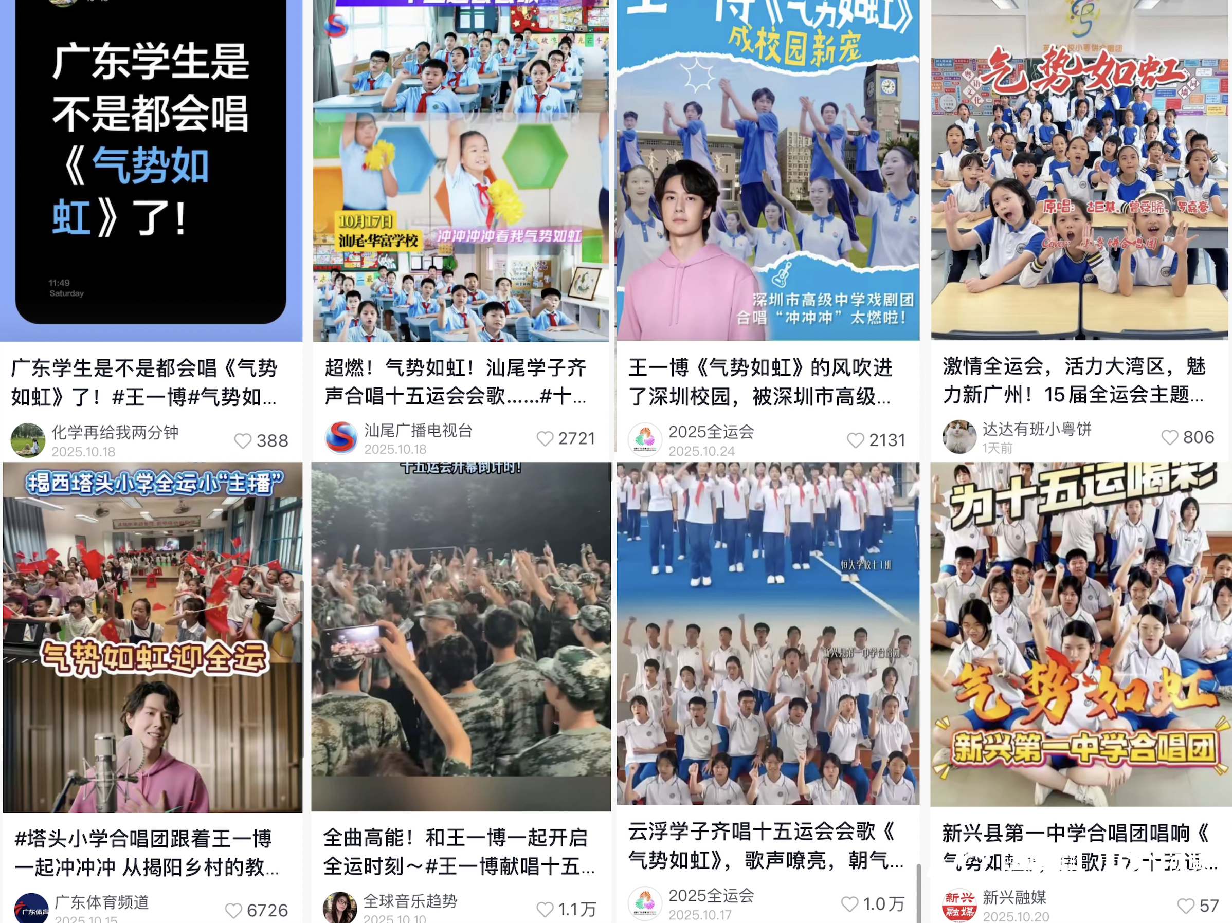 从地标联动、多元场景,再到更大范围的全民接力传唱,《气势如虹》热力助推全民参与全运的热情。当“冲冲冲,看我气势如虹”的旋律在南粤大地乃至全国持续回响,这不仅是对运动健儿的助威,更是全民以激情与热爱,为这场体育盛会写下的生动注脚。