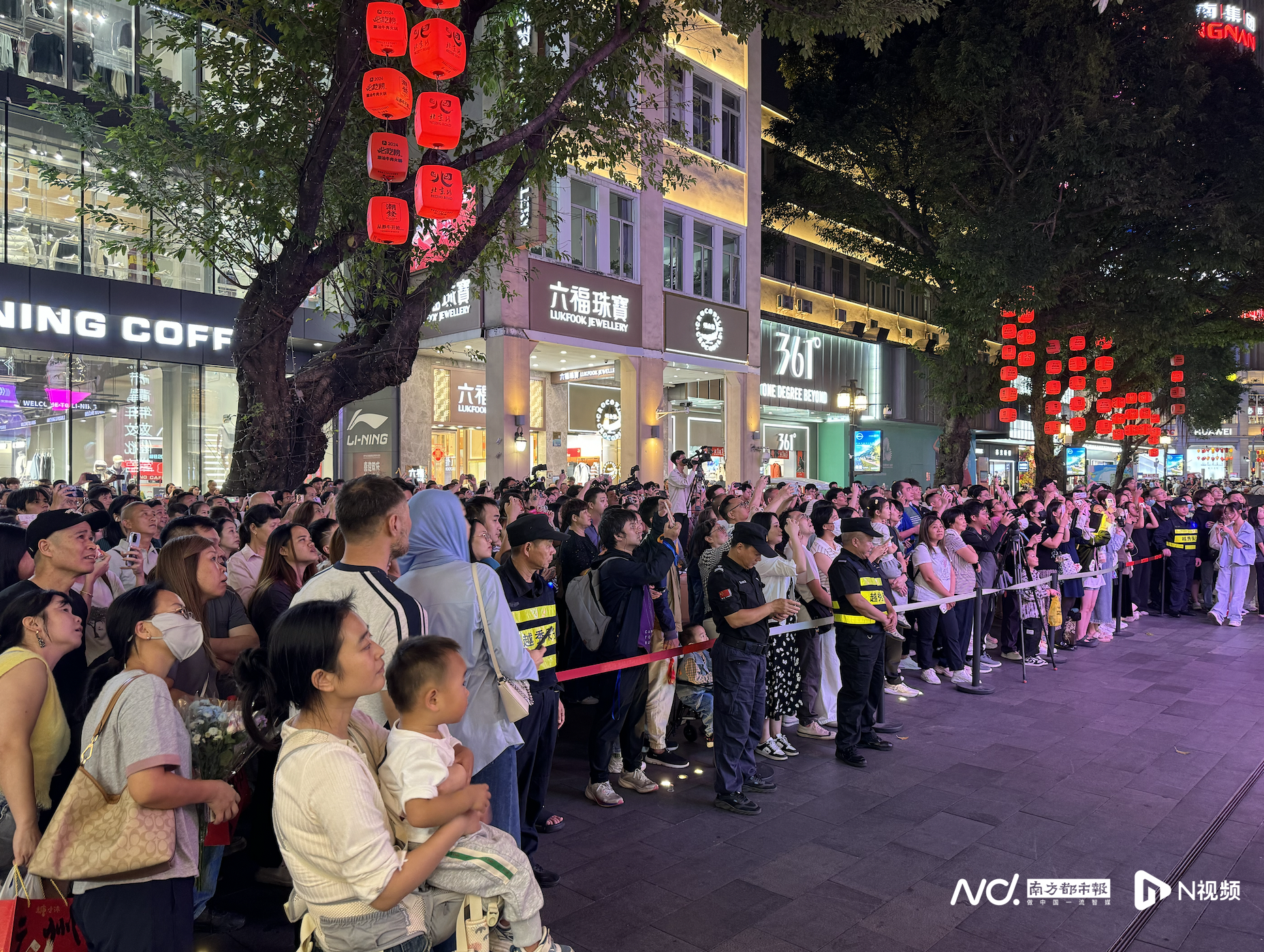 摄影:南都N视频记者钟欣10月30日晚,在人头攒动的北京路步行街,“志愿全运,新彩广州”十五运会和残特奥会广州赛区“志愿者之夜”橱窗剧场系列展演活动在广州市青年文化宫火热上演,来自穗港澳三地的文艺志愿者共同演唱了《气势如虹》《大家一起来》等歌曲。当激昂的旋律响起,橱窗剧场下观看演出的市民游客自发挥动双臂,轻声跟唱。观演人潮之中,还有不少外国游客的身影,他们或拿起手机记录,或跟随音乐轻轻摇摆。