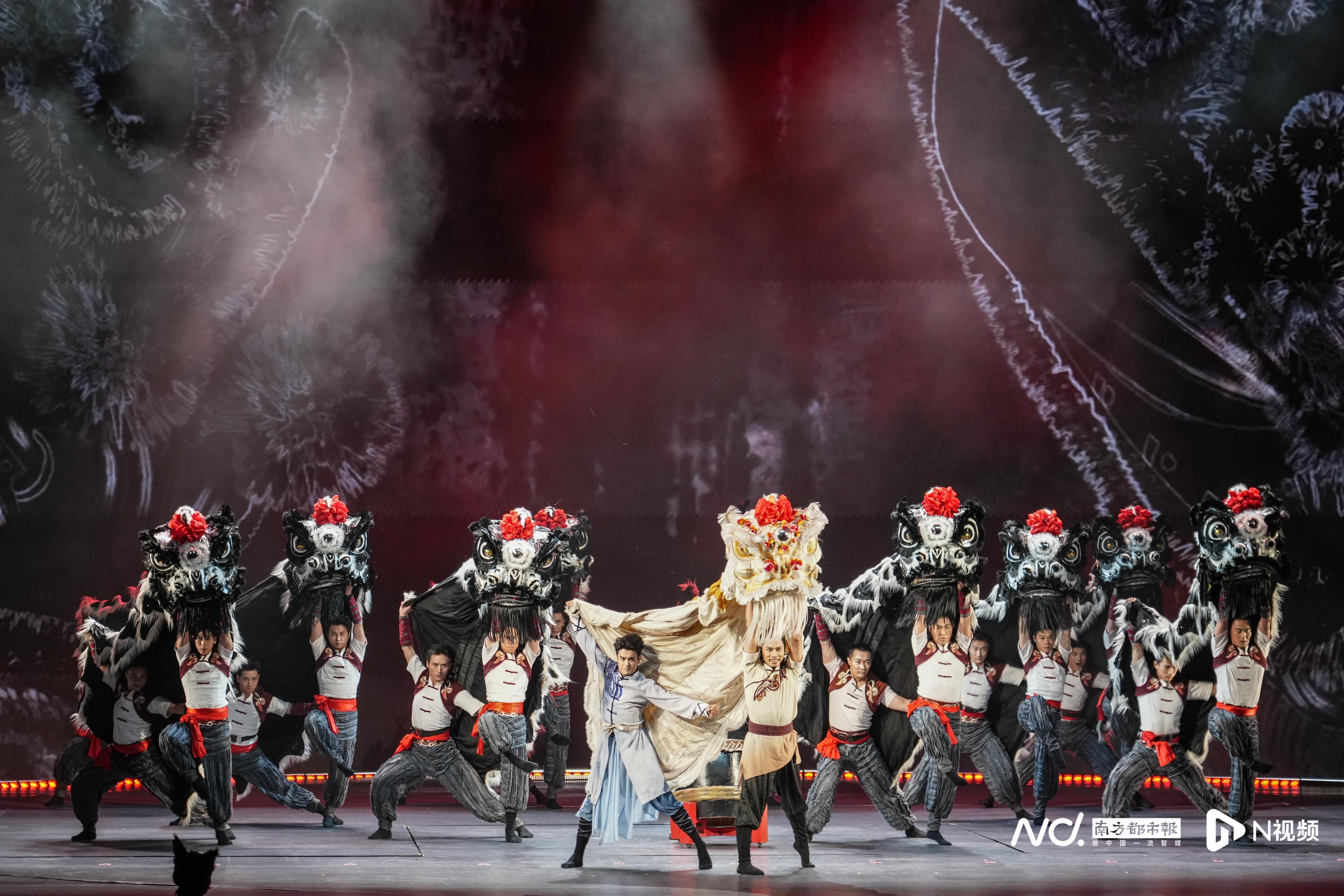 《醒·狮》总编导钱鑫、王思思介绍,这部舞剧是他们与广州歌舞剧院联手打造“岭南文化三部曲”的第一部作品,将舞台艺术与民族情感、非遗文化、地域特色深度融合。面对当下“重意境轻舞蹈”的倾向,《醒·狮》以扎实的舞蹈语汇推进叙事。“茶馆中的双人过招行云流水,练武场上的男女双人舞细腻传神,三人舞、四人舞的编排匠心独具。群舞段落更是精彩纷呈,南拳队阵气势如虹,群狮共舞震撼人心。”