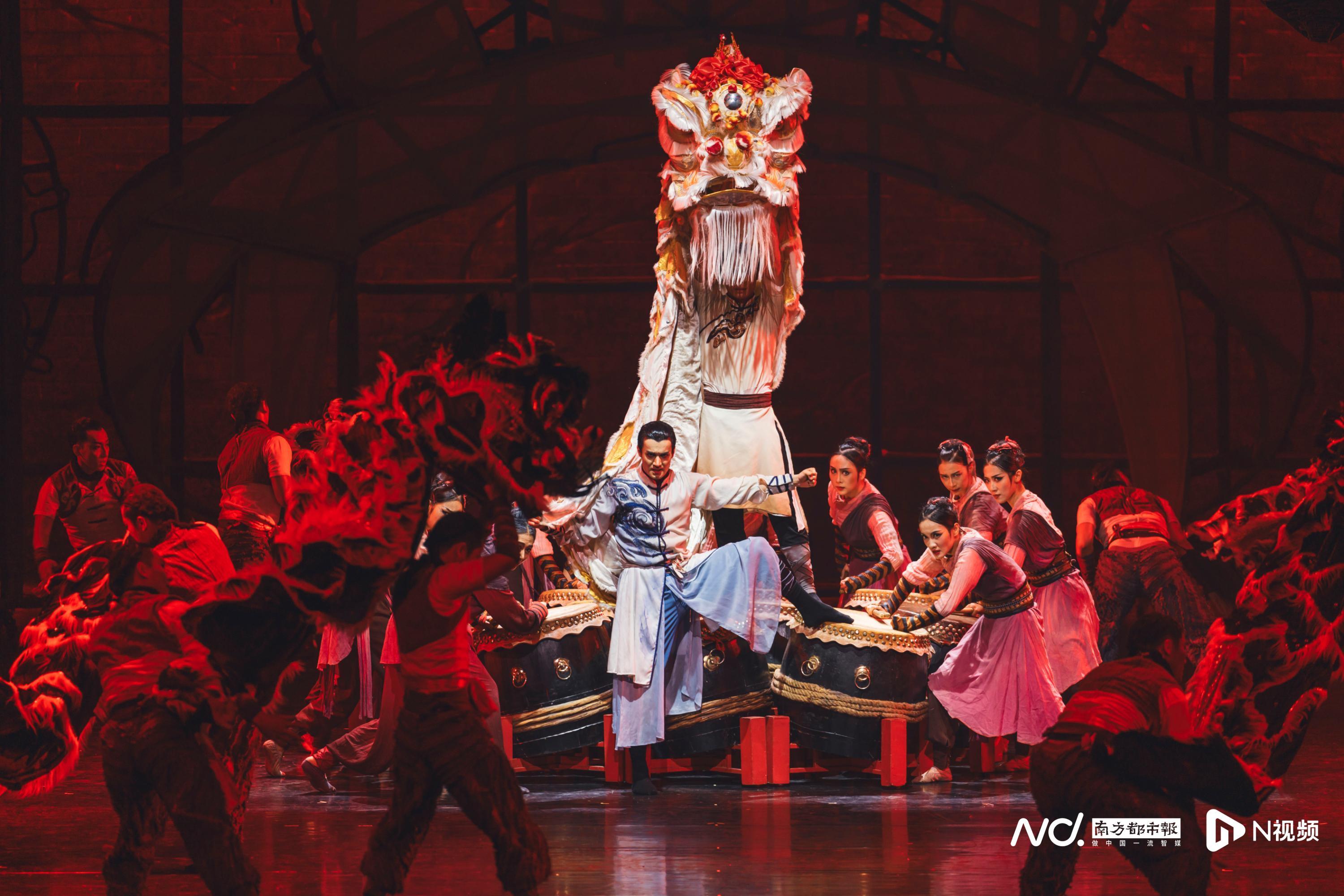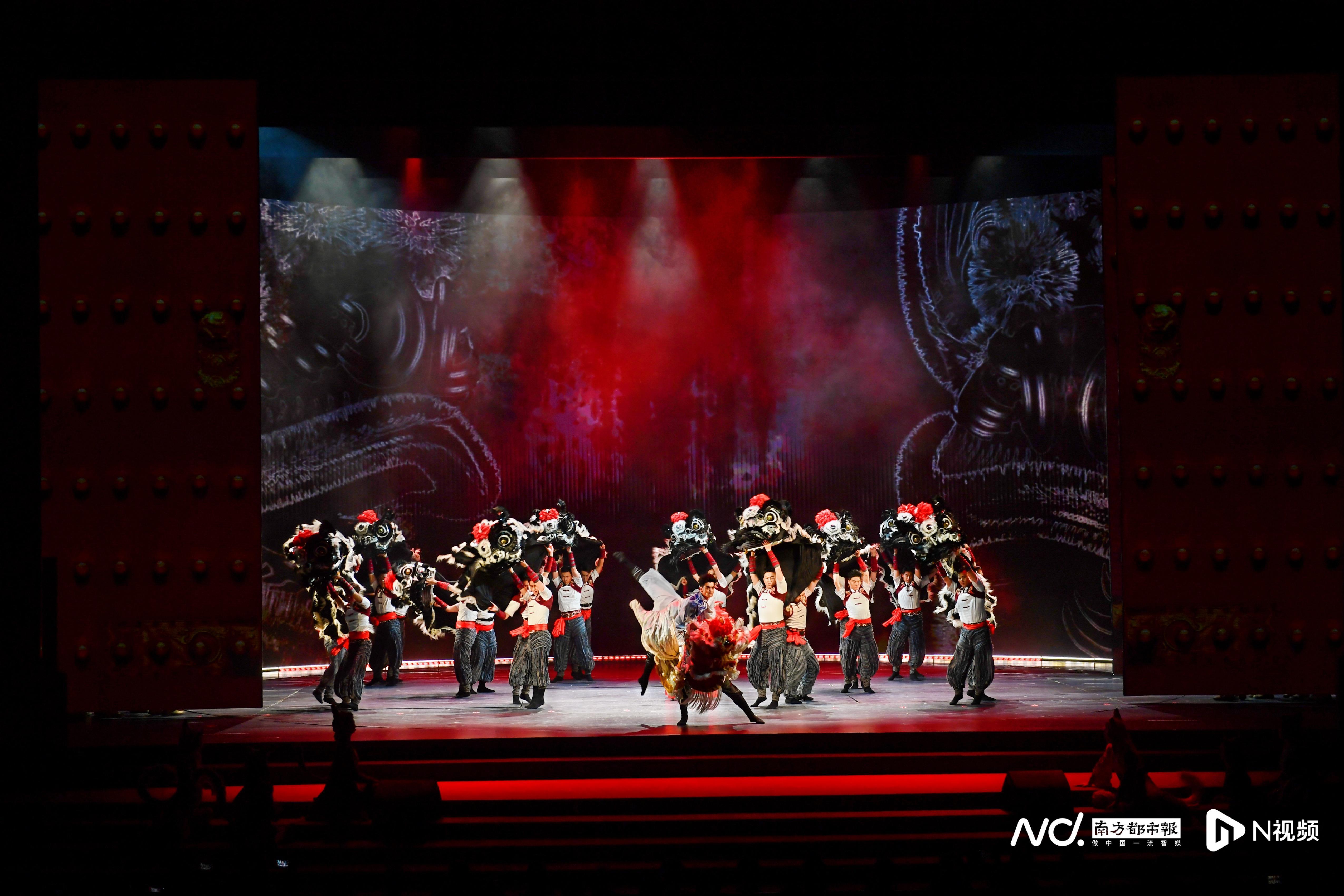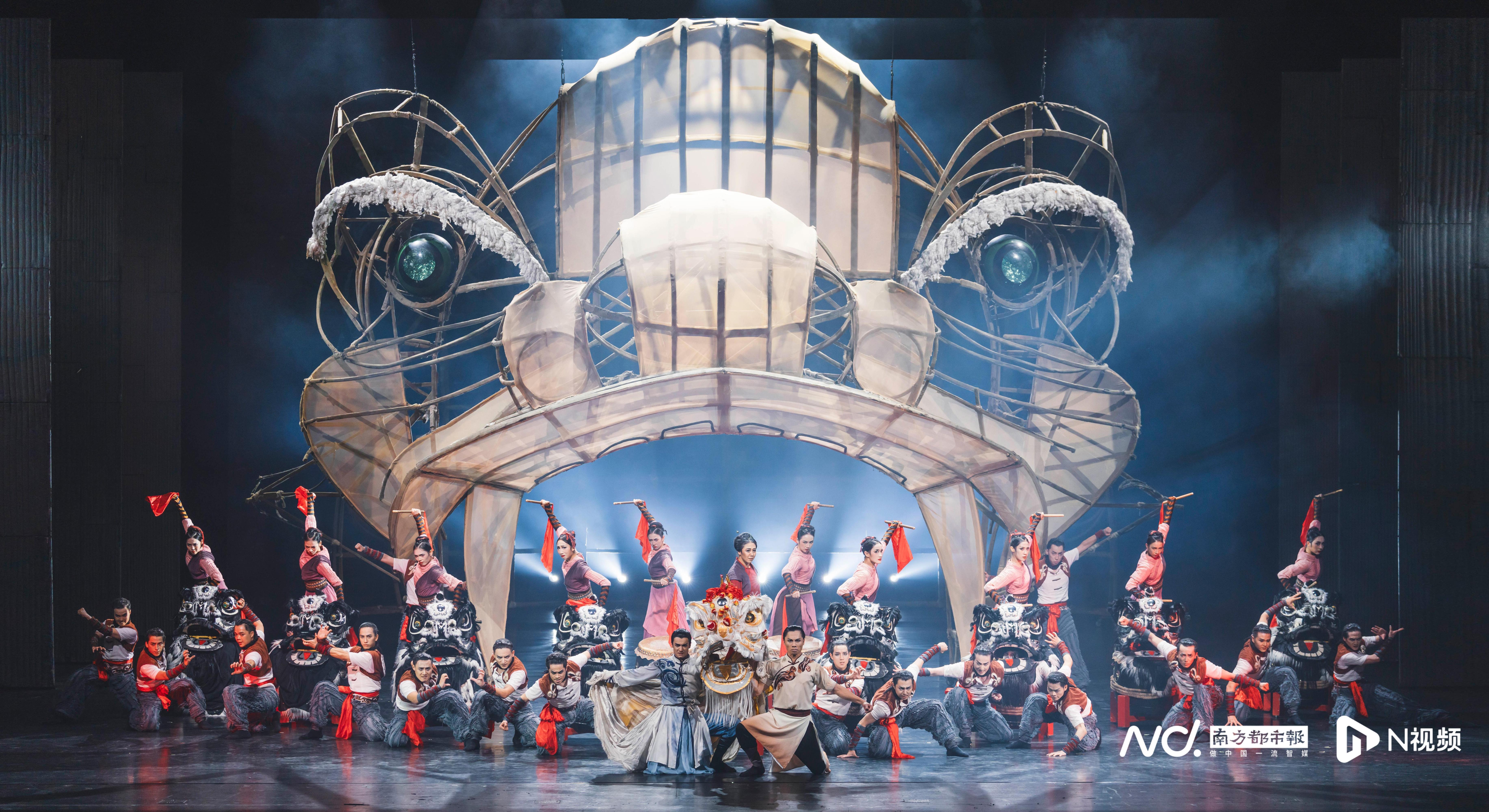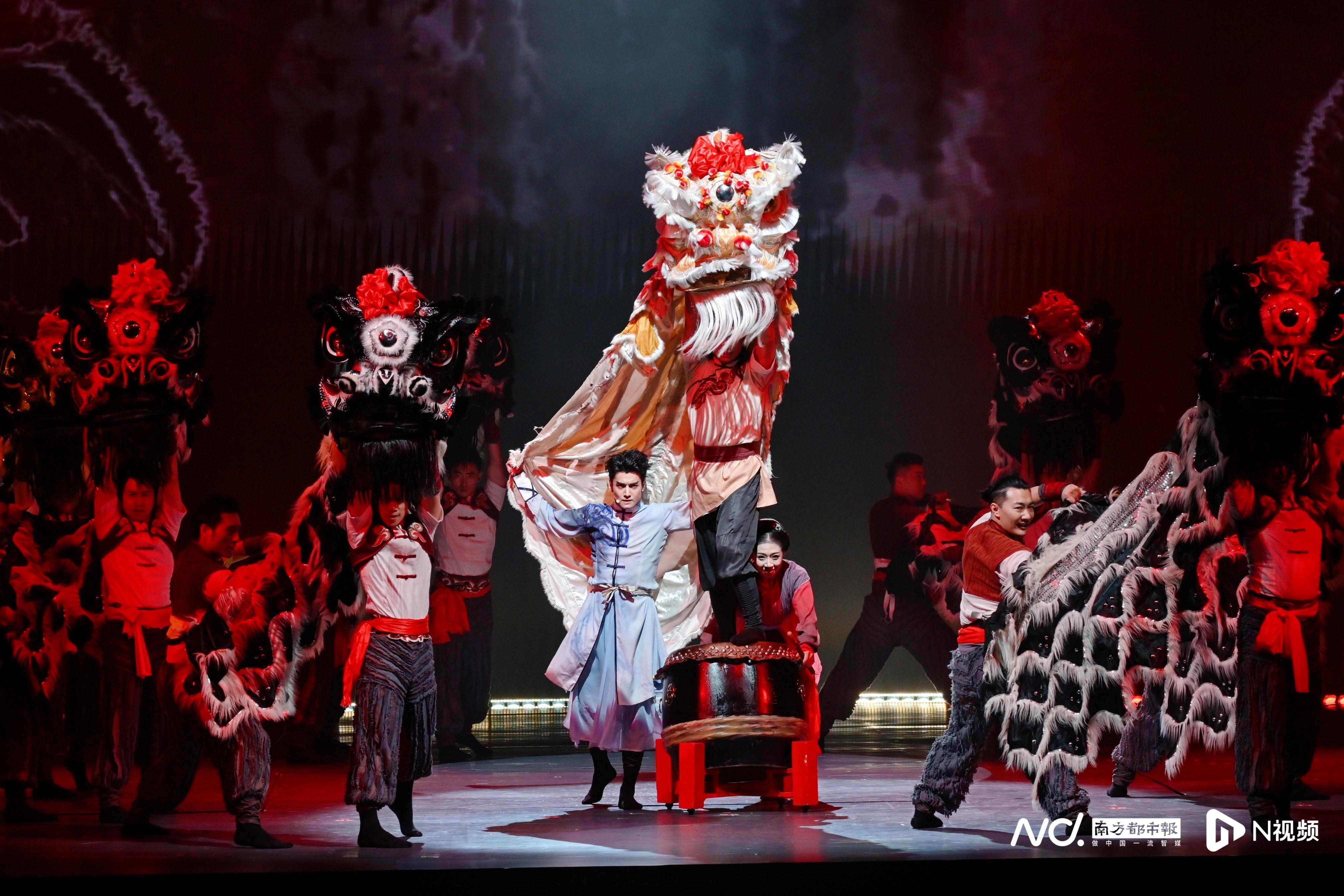 在叙事层面,《醒·狮》构建了完整清晰的故事脉络。当“有华人的地方就有醒狮”“醒狮醒国魂,击鼓振精神”的标语最终呈现于舞台,观众无不为之动容,民族精神在艺术表达中得以自然升华。在舞台创新方面,《醒·狮》将巨型非遗狮头直接搬上舞台,南拳武打与舞蹈语汇的融合,慢动作、蒙太奇等影视手法的运用,其创新意识与完成度至今仍值得称道。