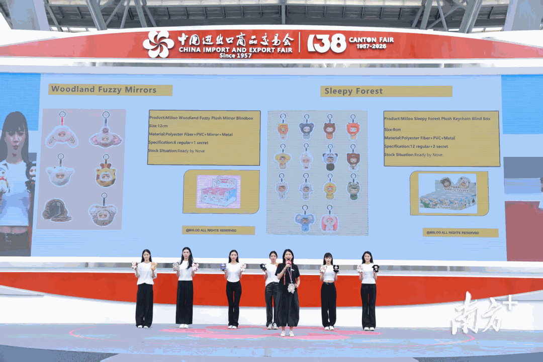 来自厄瓜多尔的采购商桑德拉·罗莫带着读小学的女儿玛丽亚穿梭在展位间。原本专注寻找纺织品采购的她,被T台上活力四射的东莞潮玩走秀深深吸引。发布会一结束,她便带着女儿走向堃鸿公司展台,精心挑选了两款Miiloo系列毛绒盲盒,作为送给弟弟家新生儿的礼物。“东莞潮玩的设计非常迷人,毛绒手感柔软,做工也十分精致。”