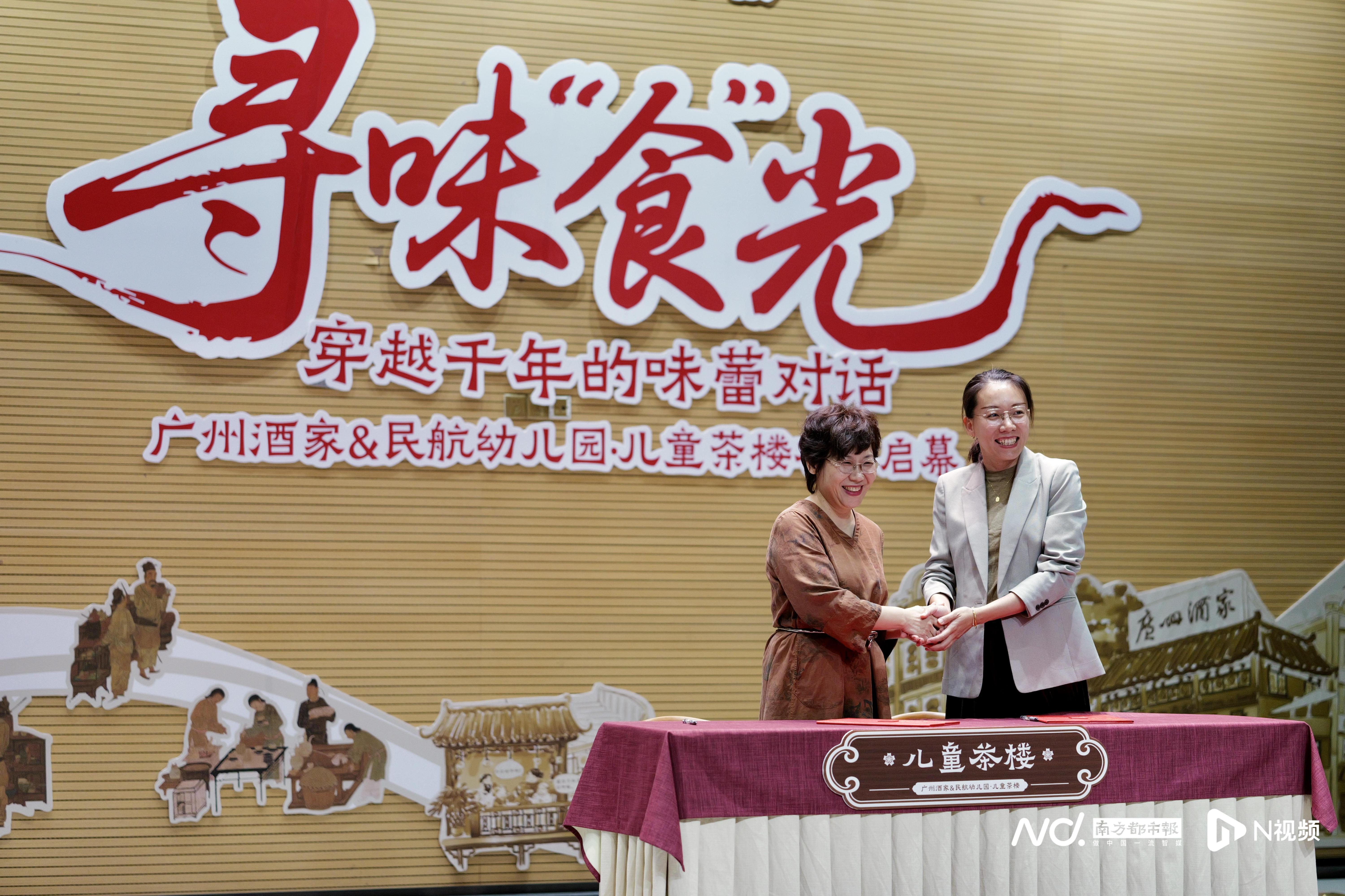 揭幕仪式现场,全国首个以宋代美学为蓝本打造的儿童茶楼首次全景呈现,典雅古朴又不失童真趣味,令人叹为观止。广州酒家与广州市白云区民航幼儿园正式签署战略合作协议,并为“广府饮茶习俗儿童工作坊”授牌,标志着这一文化传承工程迈入系统化、专业化的新阶段。