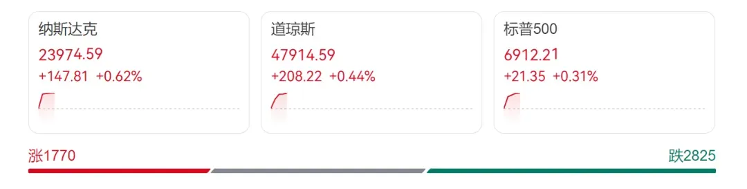 29日晚,美股三大指数集体高开。截至发稿,道指涨0.44%,纳指涨0.62%,标普500指数涨0.31%。