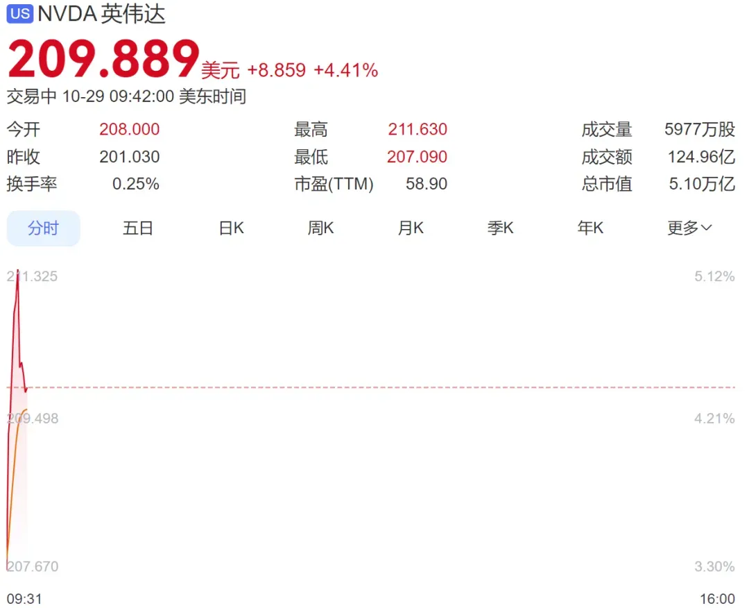 值得注意的是,英伟达涨超4%,总市值达到5.1万亿美元,单日增加约2500亿美元。