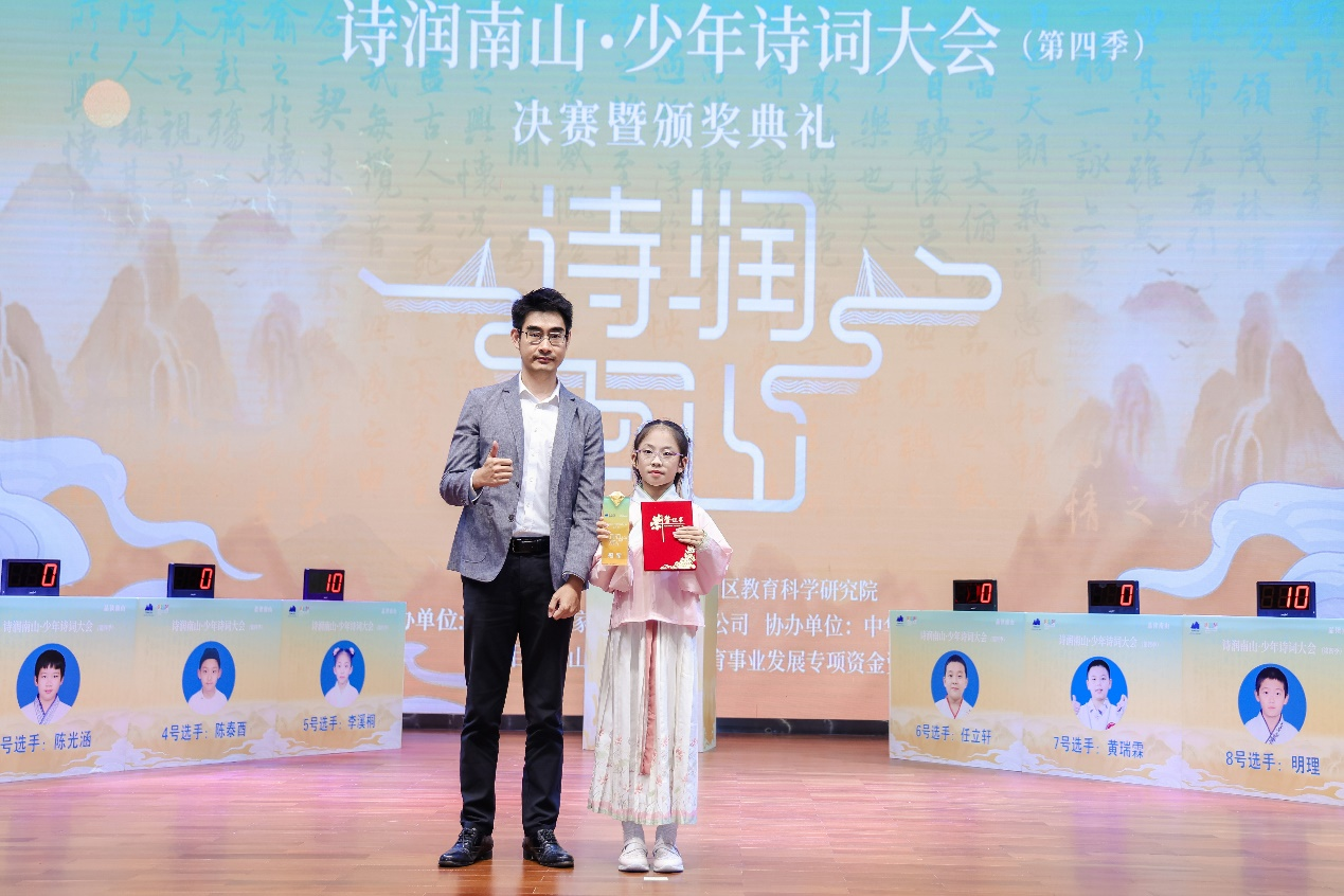 诗韵满南山,少年奋扬帆。近日,在第26届深圳读书月的浓郁书香中,“诗润南山·少年诗词大会(第四季)”决赛暨颁奖典礼在深圳市蛇口育才教育集团第四小学音乐厅圆满举行。本季诗词大会吸引了近1.8万名南山学子踊跃参与,经过数轮遴选,十位诗词达人最终会师决赛。他们以诗会友,以才交锋,联袂奉上了一场古典诗词的巅峰盛宴。