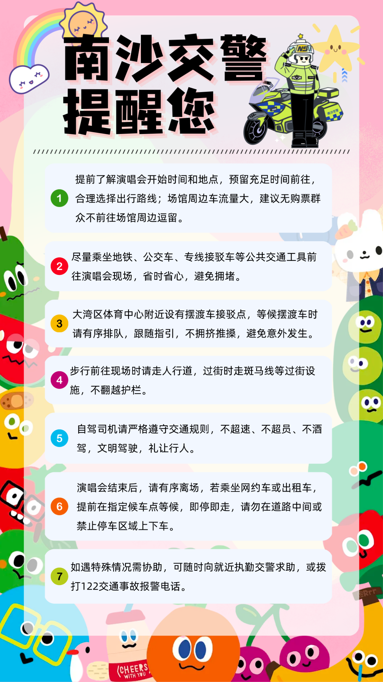 公安机关提醒,演出期间周边交通流量较大,建议观众优先选择公共交通出行,预留充足时间到场;自驾观众需遵守交通管控规定,按指引停放车辆,共同维护现场交通秩序。