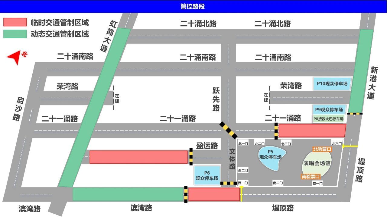 4、违停清理规则:演出日8时起,管控路段内的违停车辆将被清理;其余路段将根据车流引导有序通行或路侧停放,违规停放车辆将被拖移。