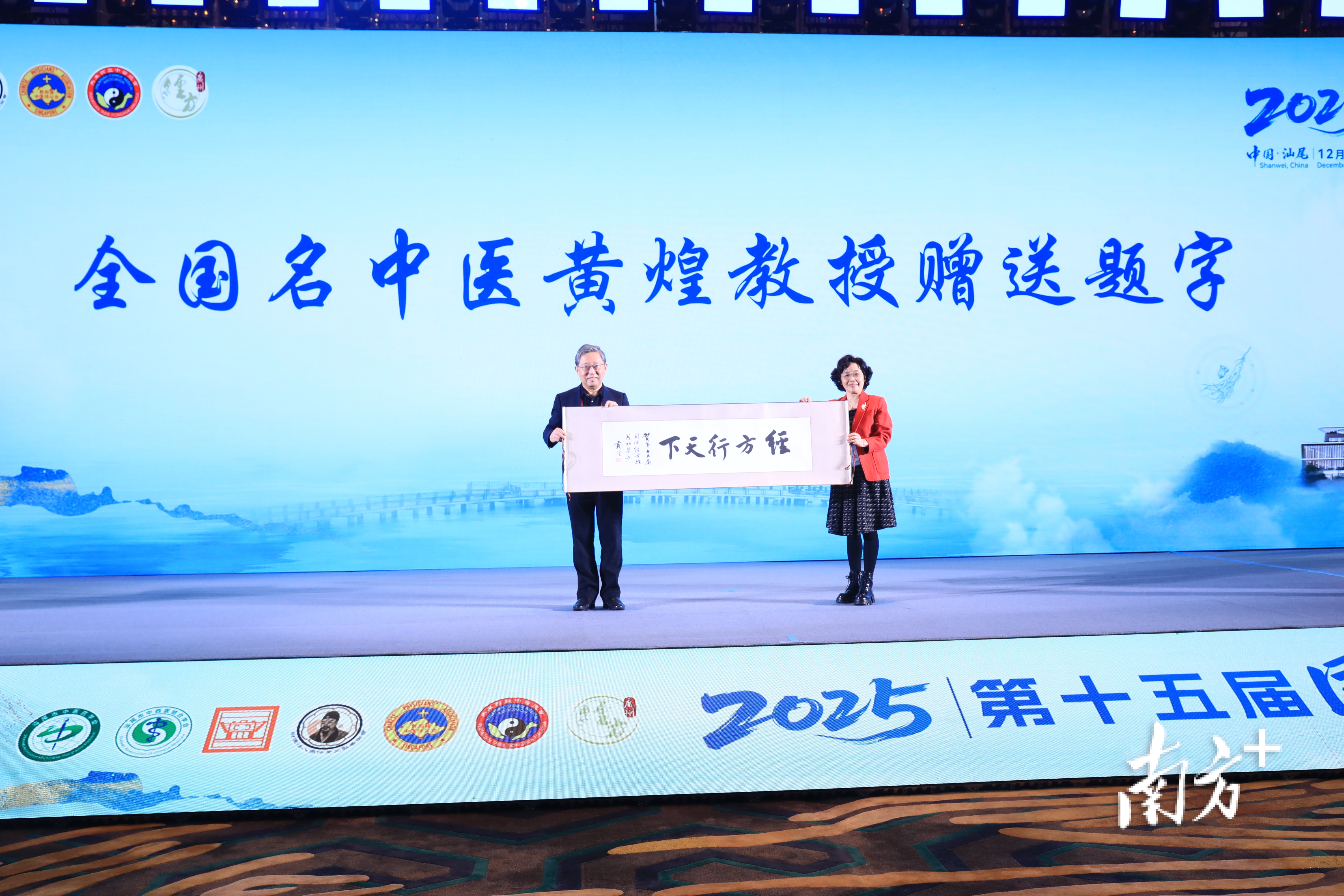 随后,黄煌为国际经方班赠送珍贵题字,为汕尾中医药事业留下瑰宝墨迹。