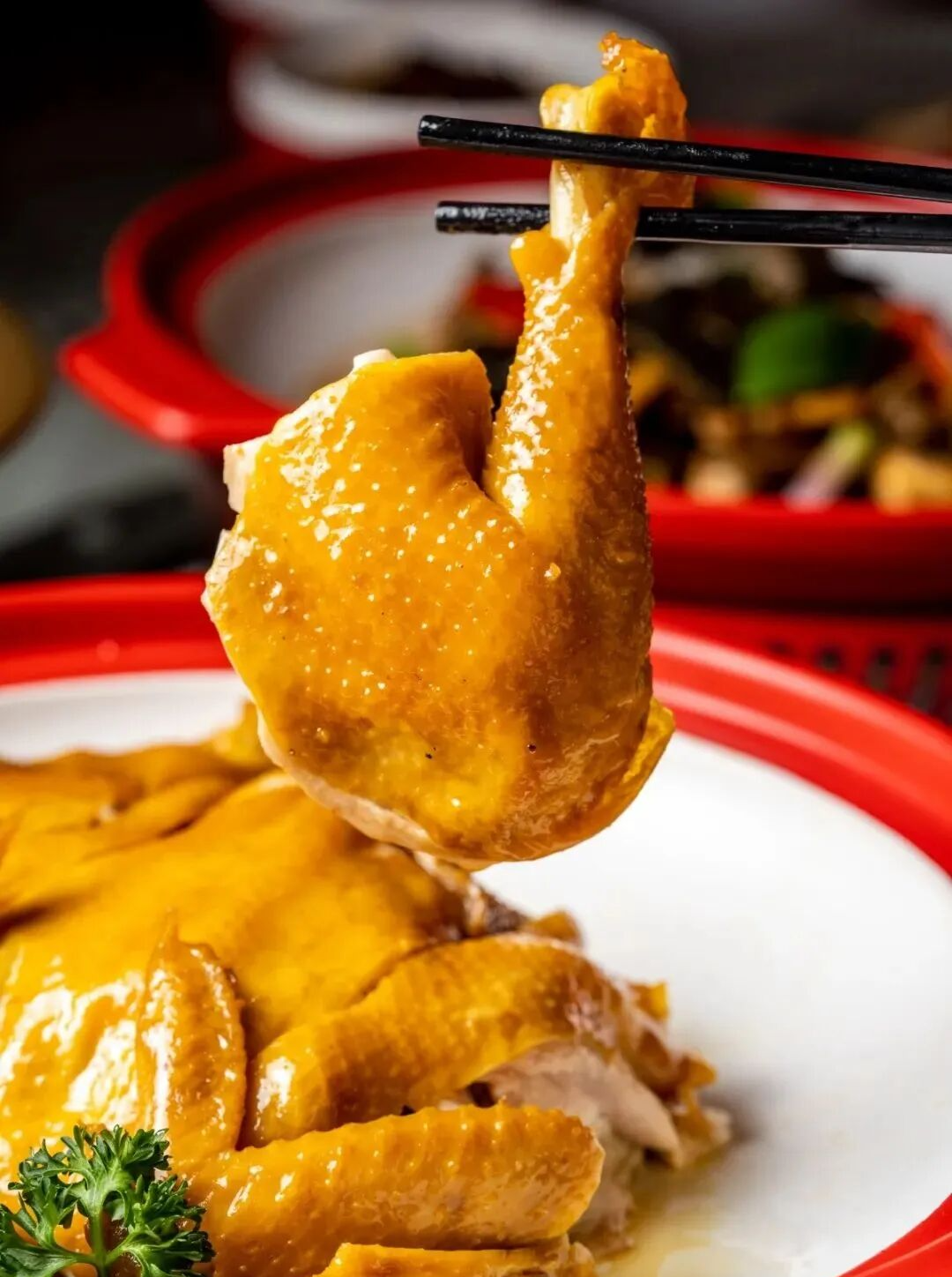 用粗盐焗制,鸡皮是诱人的淡黄色,咸香入味,连骨头都带着香气。徒手撕鸡时,那种皮肉分离的瞬间,在惠州可是家喻户晓。