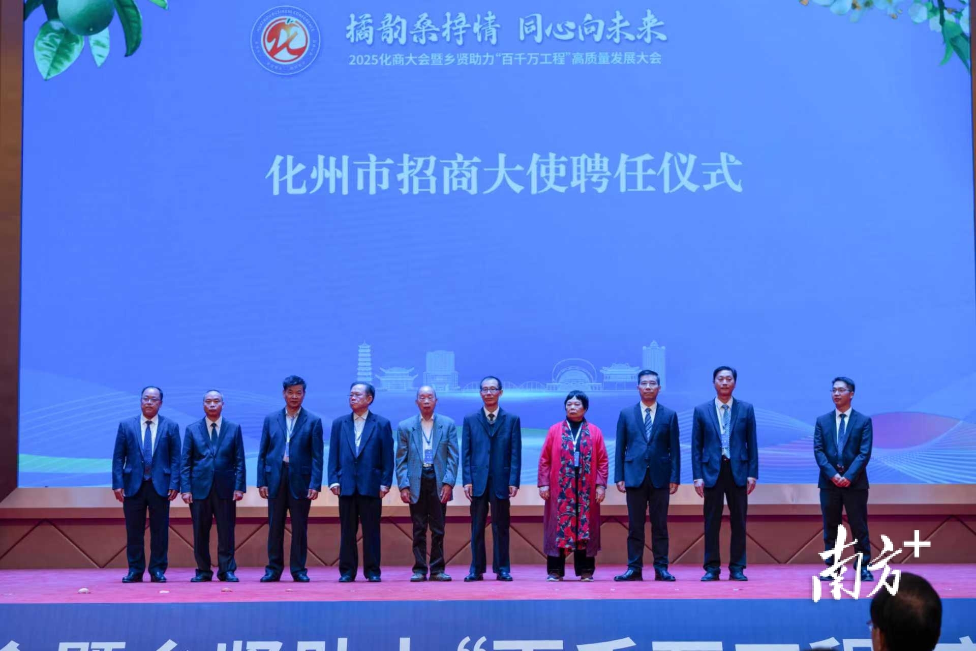 为凝聚招商合力,大会还举行了招商大使聘任仪式和“百会帮百镇”工作中作出突出贡献的商(协)会颁发仪式。15名深耕行业、心系家乡的企业家获聘,20家商(协)会获颁荣誉证书。他们将成为化州招商引资的“红娘”、城市形象的“代言人”。化商代表在发言中动情地说:“无论走多远,家乡永远是我们的根。看到化州如今的发展势头,我们倍感振奋,愿意把更多资源带回家乡,与乡亲们一道共建美好家园。”