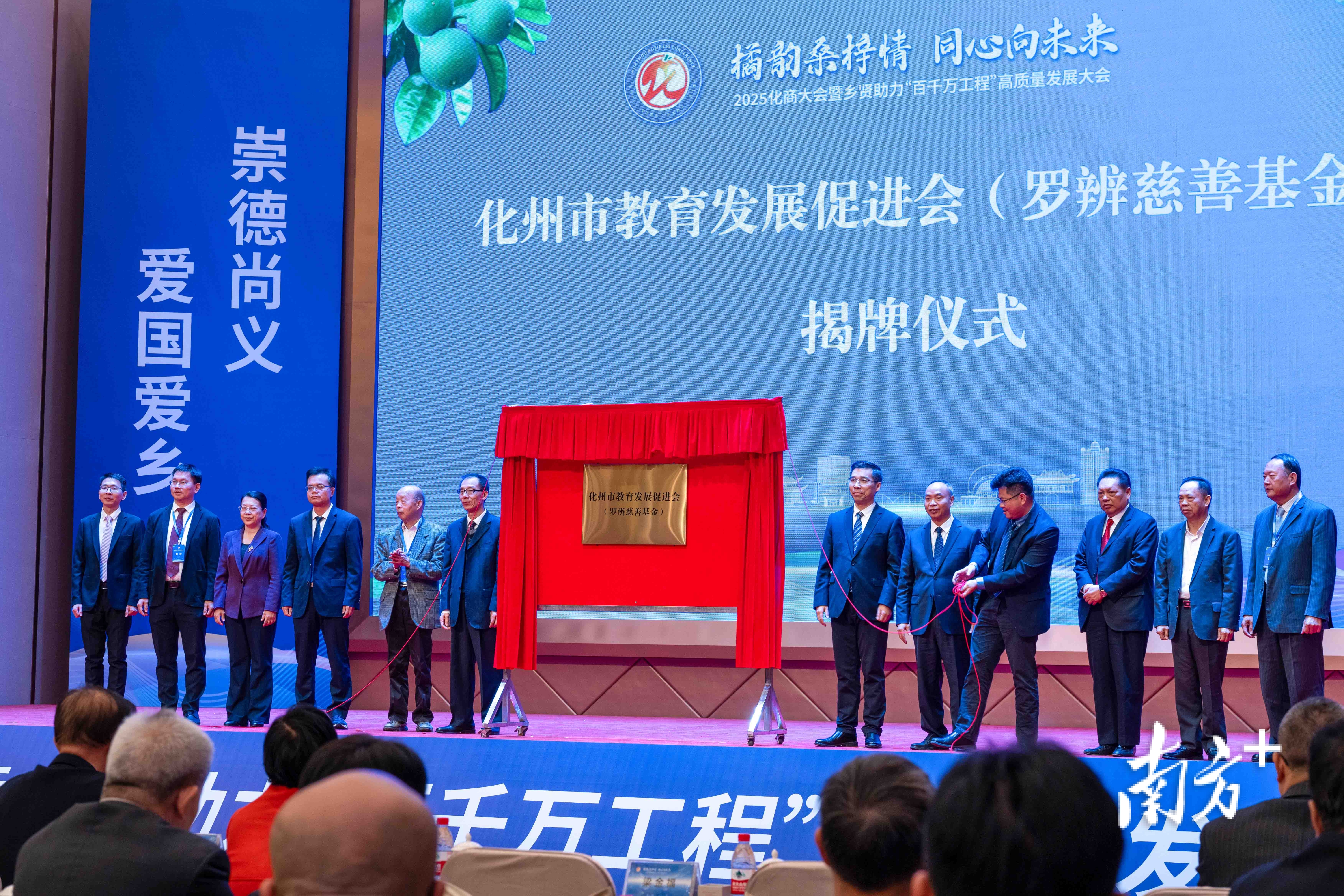 大会现场举行了化州市教育发展促进会(罗辨慈善基金)揭牌、授牌仪式,民政局局长黄强宣读成立批复文件。