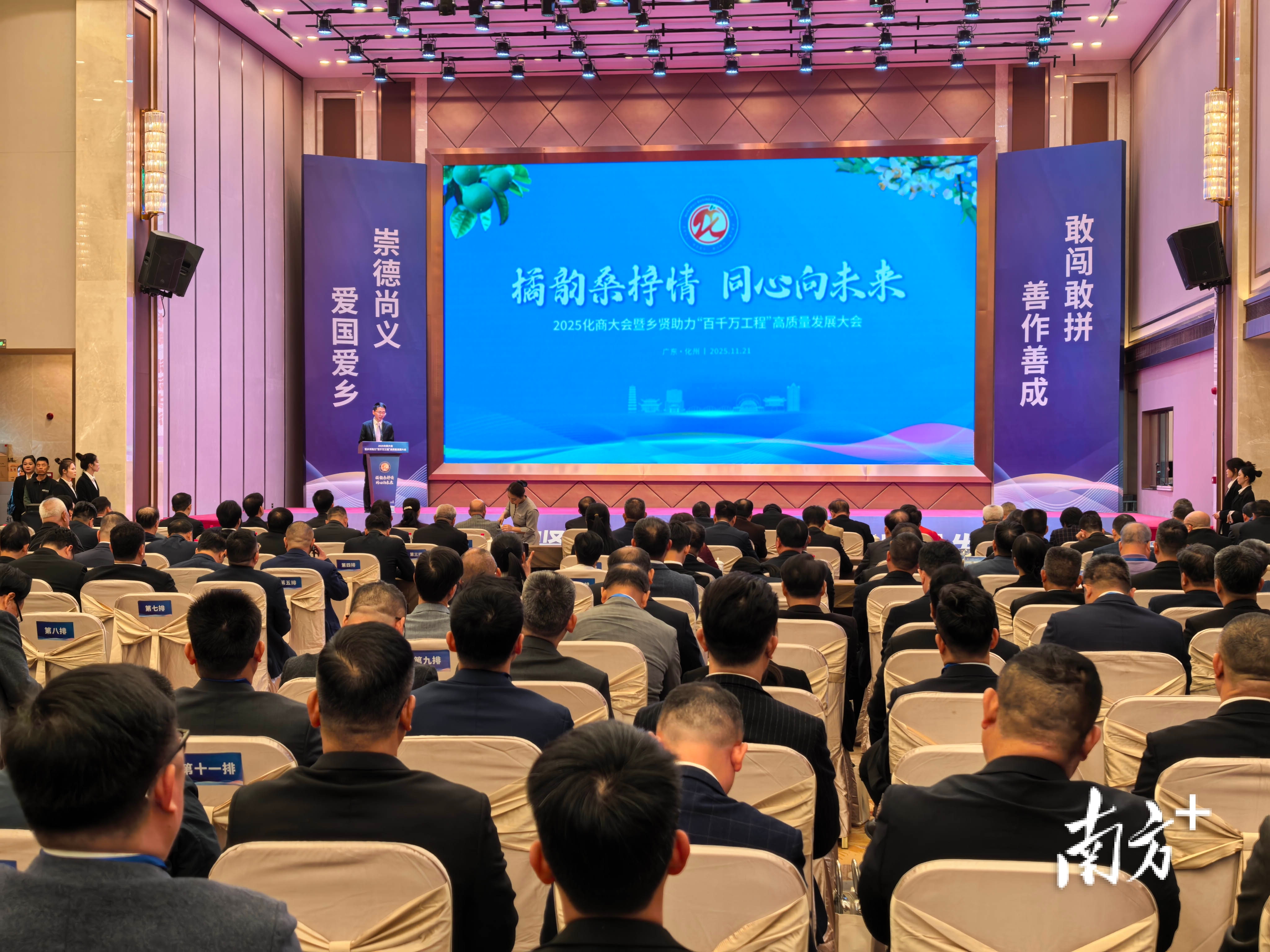 11月21日下午,2025化商大会暨助力“百千万工程”高质量发展大会在茂名临空经济区召开。超300名化商代表齐聚一堂,共叙桑梓情谊,共话发展大计,为化州“百县千镇万村高质量发展工程”注入磅礴力量,携手绘就高质量发展新蓝图。