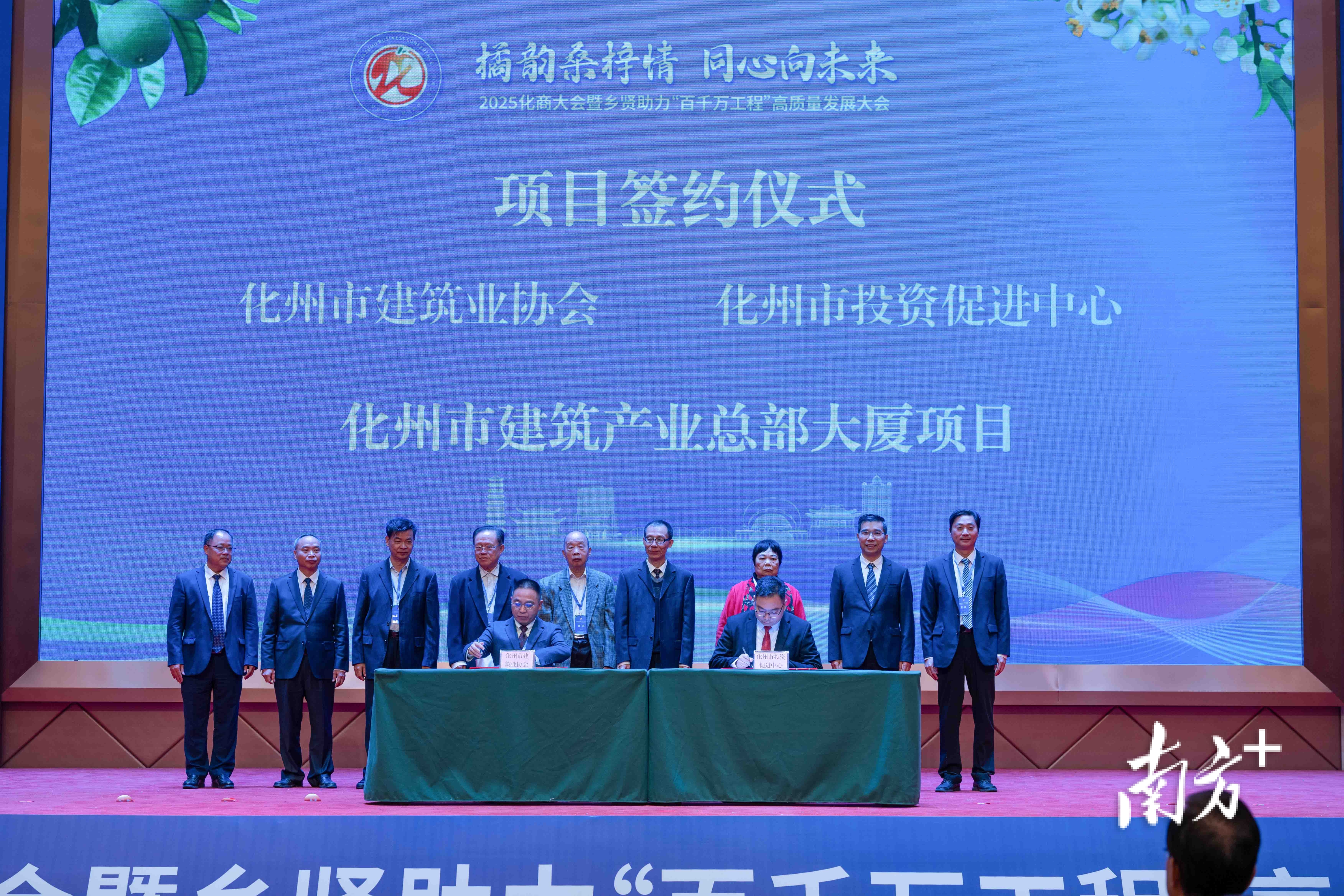 在招商引资项目签约仪式上,化州市建筑产业总部大厦项目签约,将打造集聚建筑咨询、工程设计、科创服务、建材交易等现代服务业态的化州CBD中心。