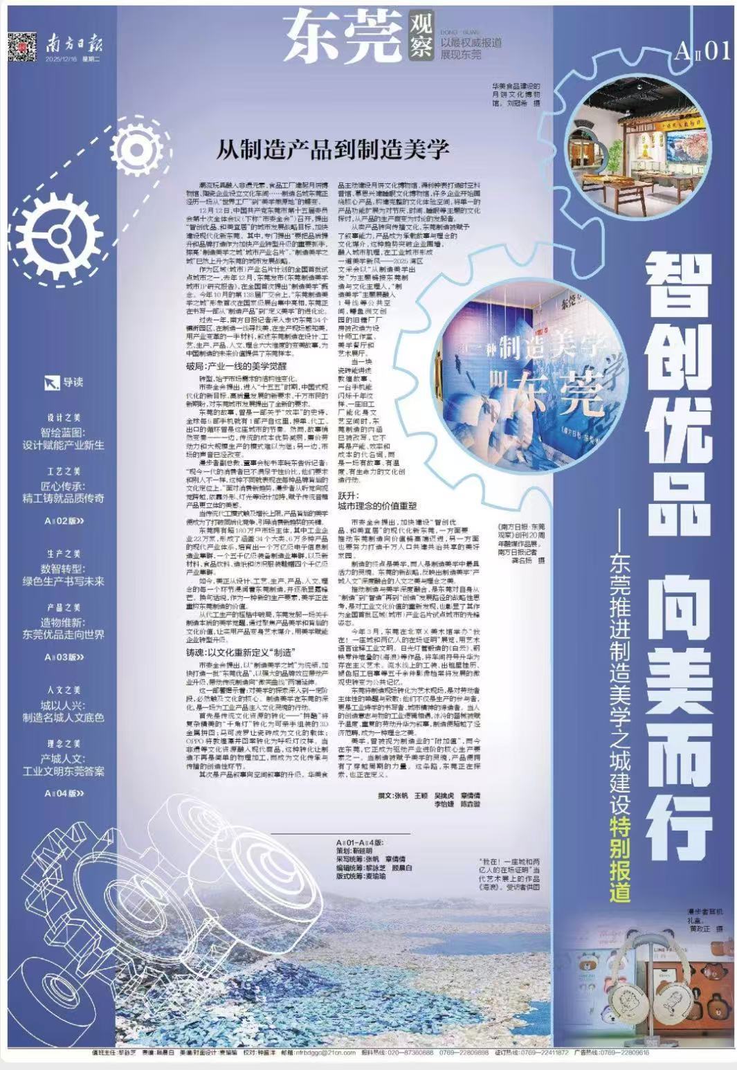 过去一年,南方日报记者深入走访东莞34个镇街园区,在制造一线寻找美,在生产现场感知美,用产业变革的一手材料,叙述东莞制造在设计、工艺、生产、产品、人文、理念六大维度的变美故事,为中国制造的未来价值提供了东莞样本。