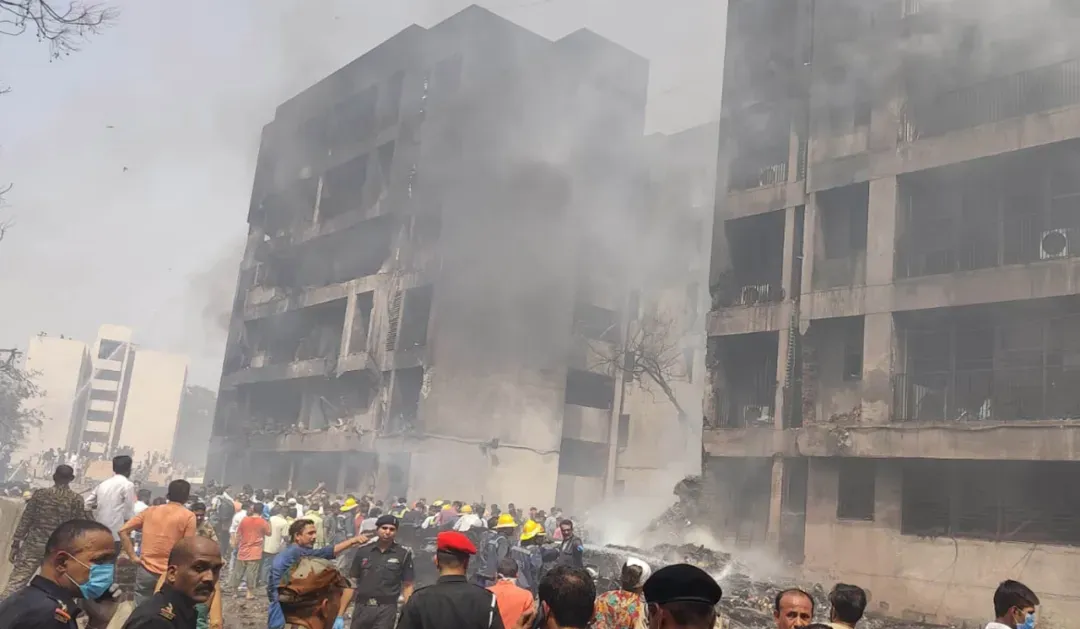 飞机最终坠毁在距机场不远、民房密集的低矮建筑区,一栋医学院宿舍楼被直接撞毁,引发剧烈爆炸与火灾。