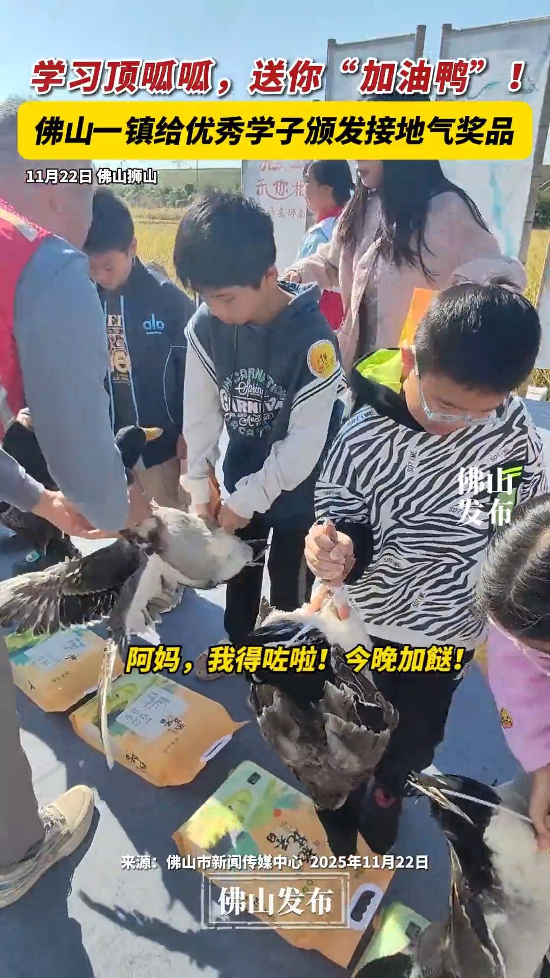 “阿妈,我得咗啦!”“咦?哇!今晚加菜!”近日,佛山狮山镇为优秀学子颁发奖品,包括青头鸭、大米。网友:“这奖品很务实、很广东!”这些学校的奖品真“食在”>>