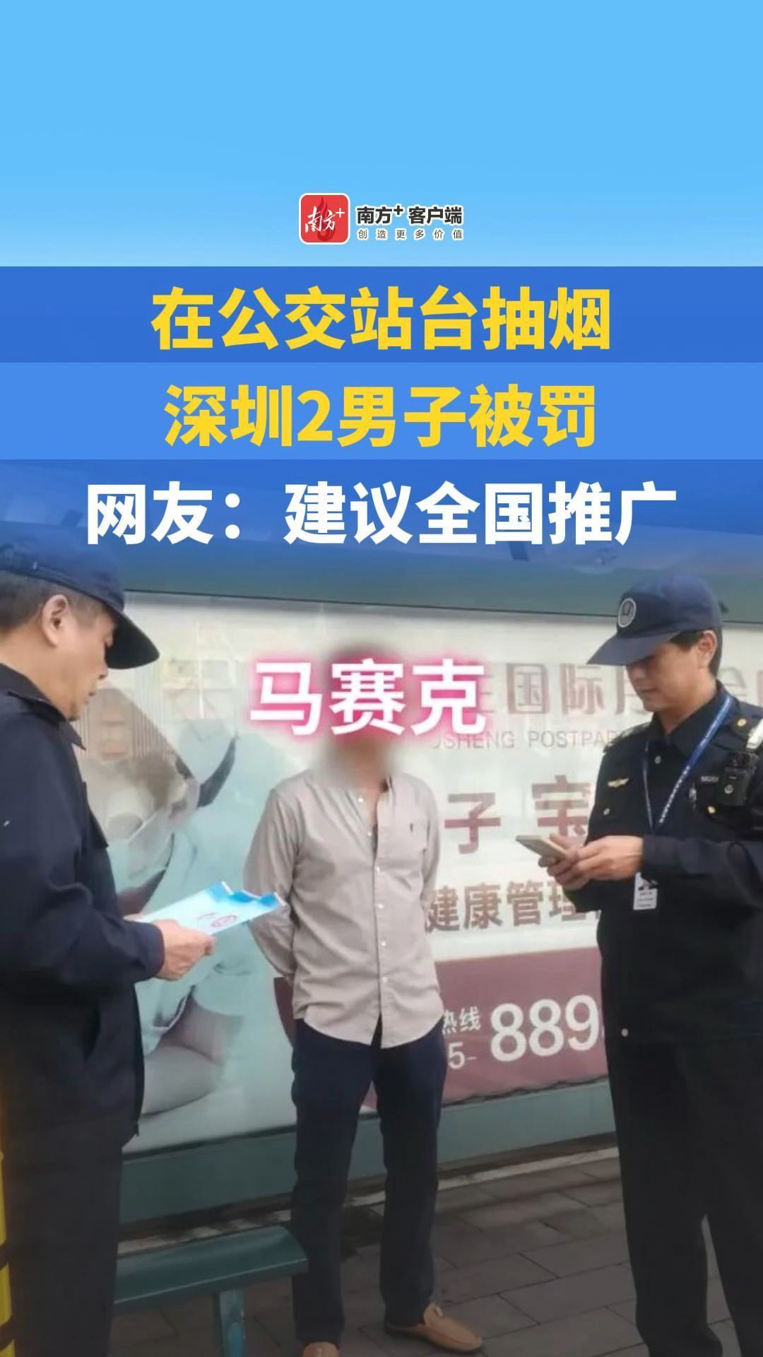 在公交站台抽烟,深圳2男子被罚,网友:建议全国推广