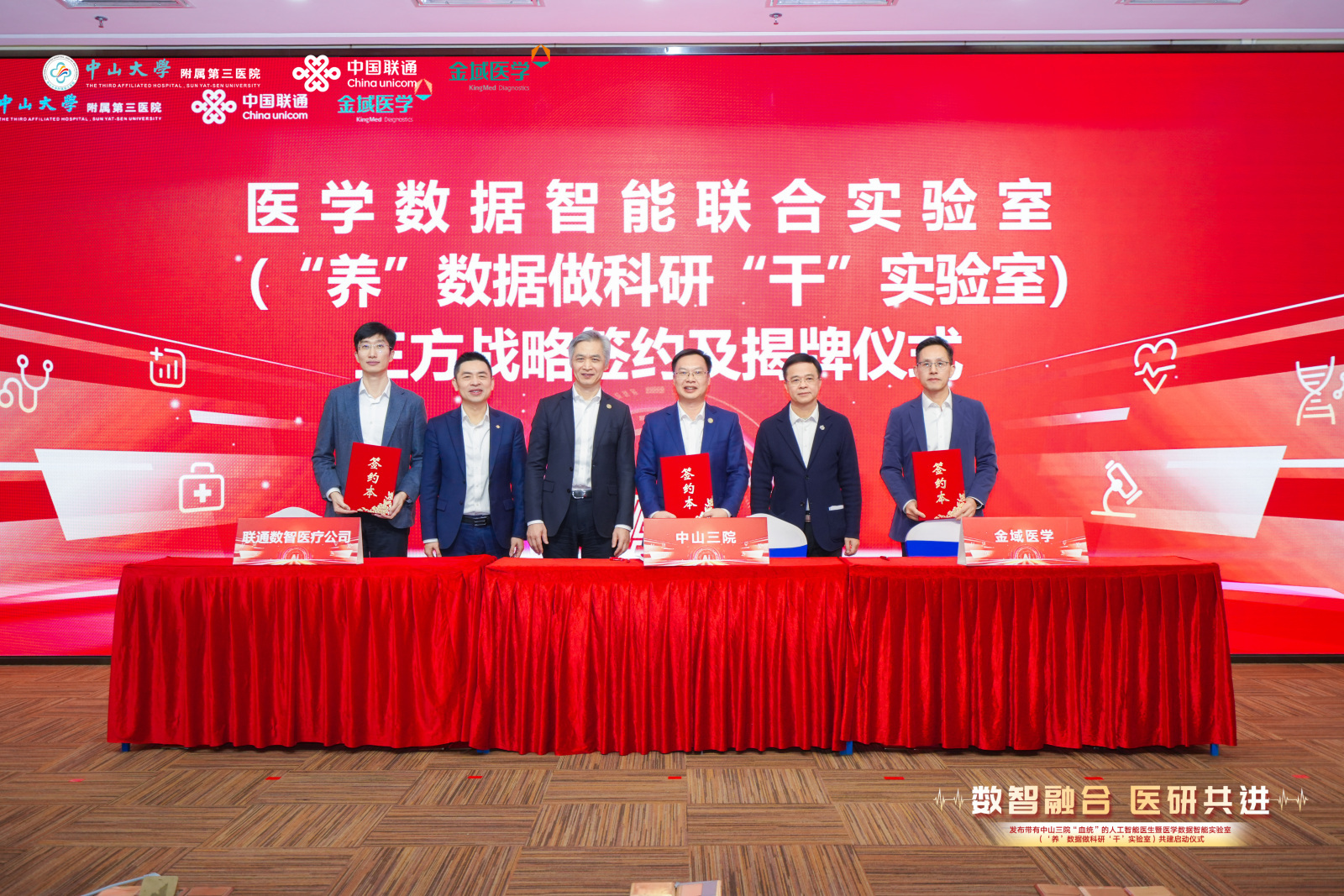发布会上,中山三院还携手战略合作伙伴——广州金域医学检验集团股份有限公司与联通数智医疗科技有限公司,共同启动了“医学数据智能联合实验室”。据悉,在人工智能与数据双驱动的新时代,该实验室将致力于推动医学研究从传统“湿实验室”(以实验操作为主)向“干湿融合”新范式升级,旨在打造“临床可用、科研可溯、产业可推”的医学AI创新生态,让数据成为新“试剂”、算力成为新“仪器”、AI成为新“研究员”,重塑医学研究的路径与效率。