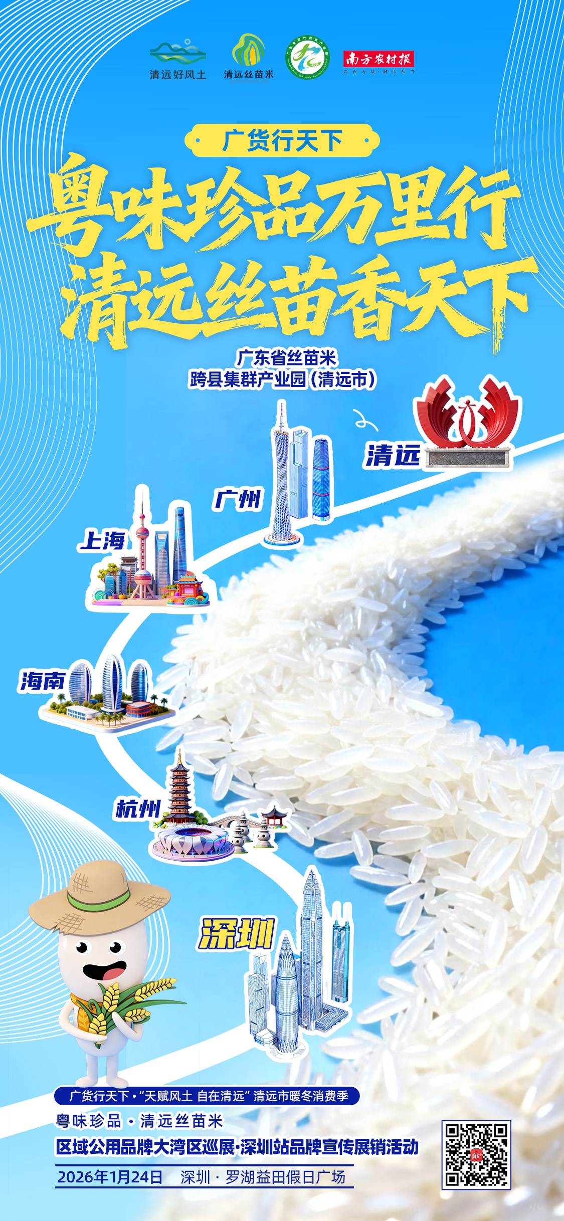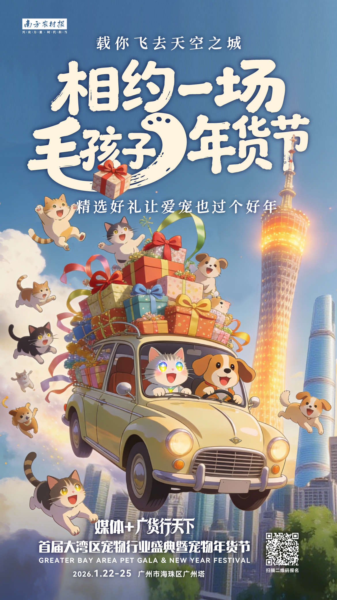 除了传统消费品,在新春佳节到来之前,广东还通过“媒体+”打造多元消费场景,为广大消费者提供更多年货选择。在1月22日-25日,广货行天下·媒体+首届宠物行业年度盛典暨宠物年货节在将广州塔下启幕,现场将展示展销一批属于“毛孩子”的优质年货,链接珠三角数千家宠物用品企业,从智能猫砂盆到定制服饰,任君选择。而在1月16日以及1月24日,清远五大百亿产业家族的两位成员——连州菜心、清远丝苗米将在深圳展销,为粤港澳大湾区市民朋友们提供更多年货选择,丰富大家的年夜饭餐桌。