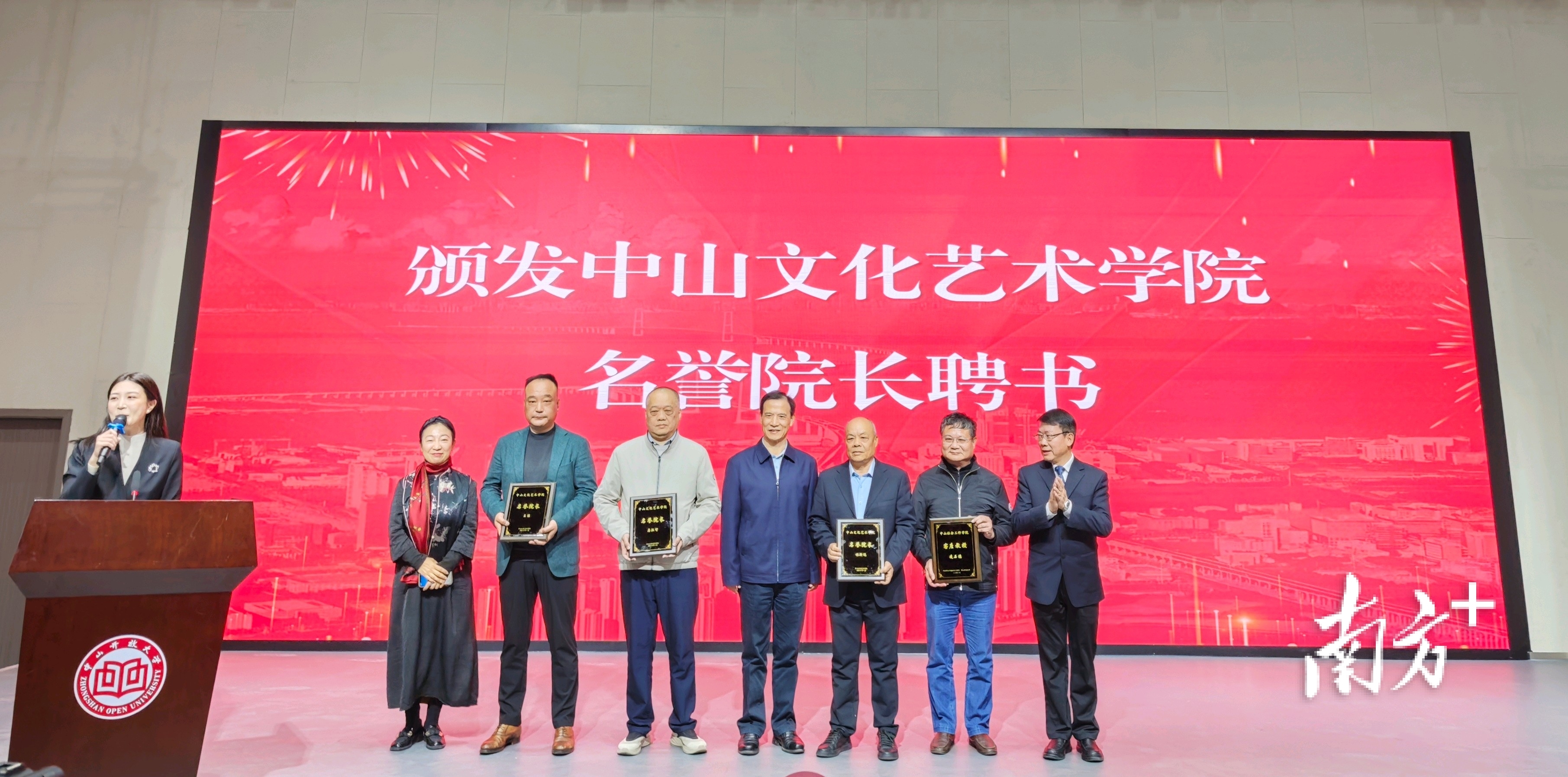 颁发中山文化艺术学院名誉院长聘书。 南方+ 苑世敏 拍摄