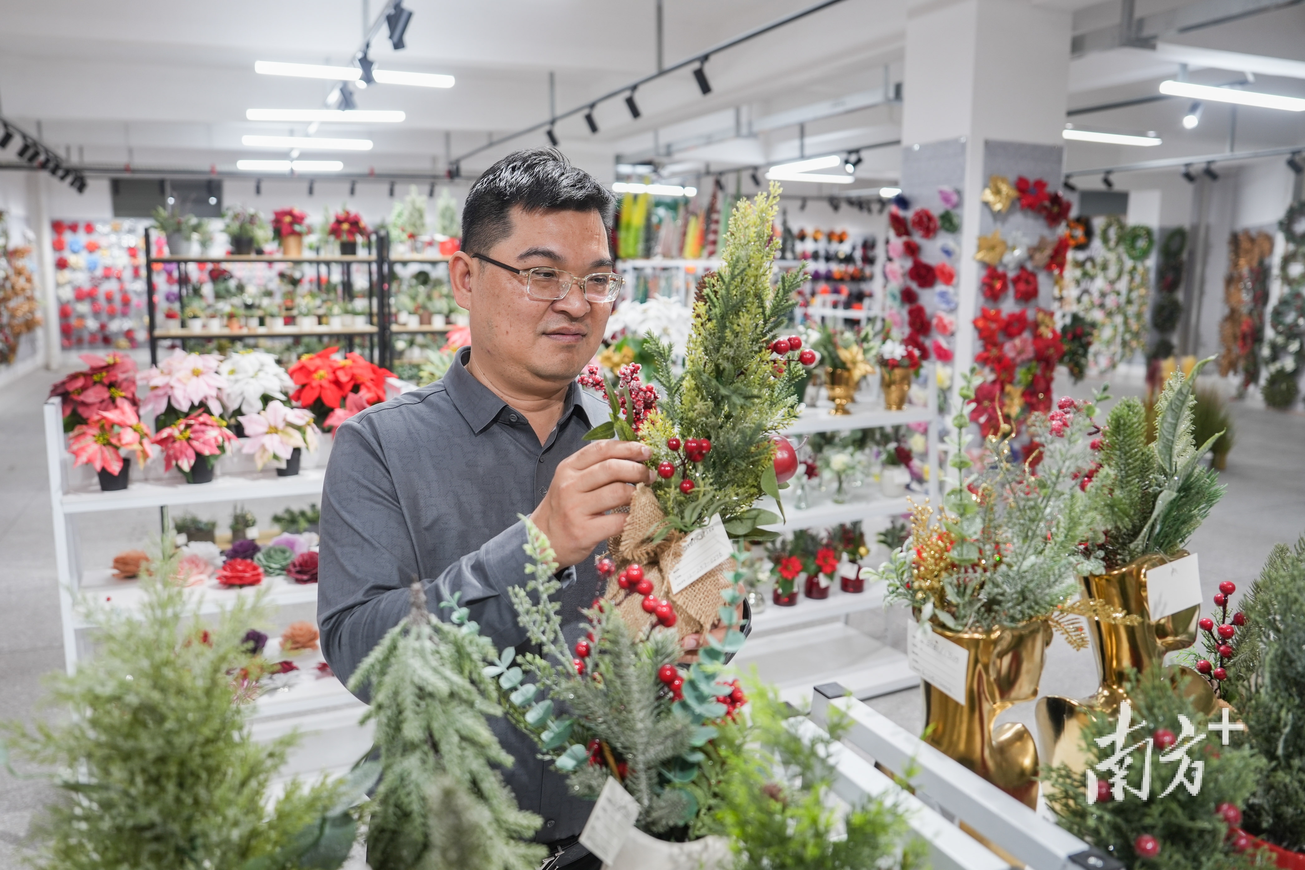 楼上的仿真花展厅里,分门别类地展示着用于圣诞节、感恩节、复活节等西方节日的仿真花木。这是李俊伟起家的生意门类——2003年,他辞掉教师工作到深圳“下海”从商,2005年成立公司开展仿真花加工业务。当时,公司依托“三来一补”政策,主要承接香港贸易公司的订单做代工。但代工生意终究是“看甲方脸色吃饭”,2008年那场席卷全球的国际金融危机,让李俊伟坚定了要做品牌,这样才能用自己的打法应对市场的风云变幻。