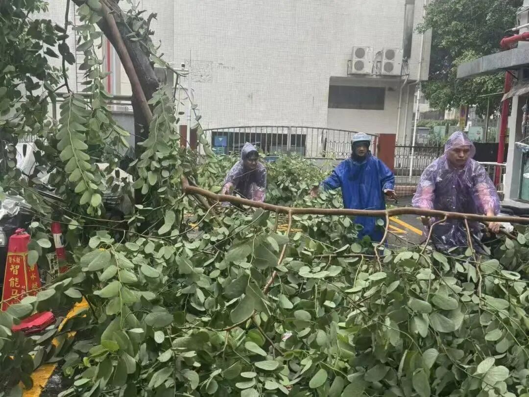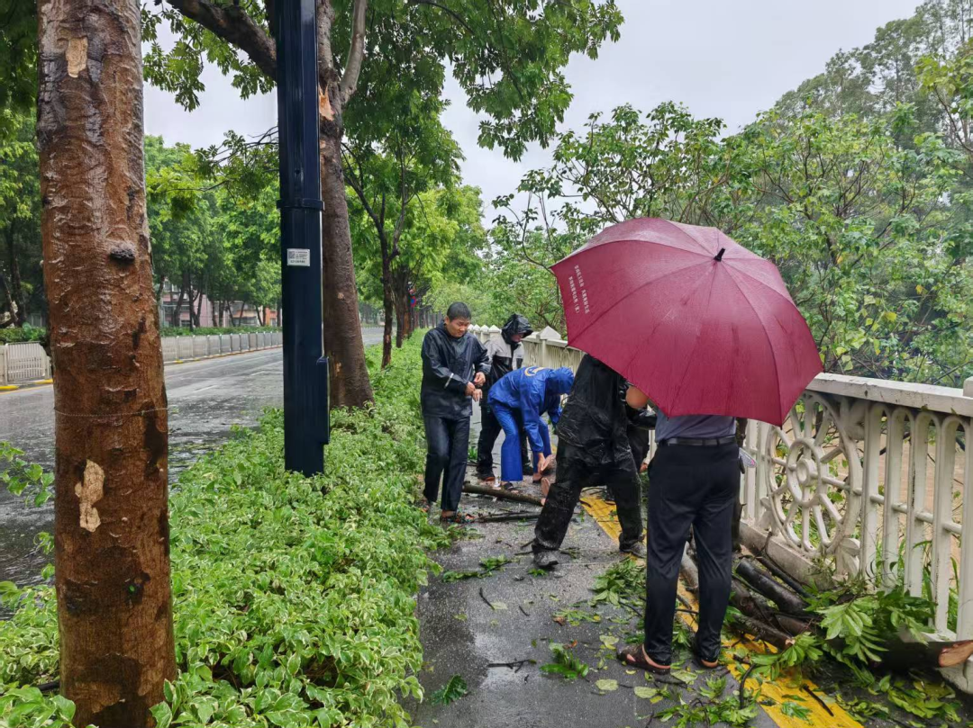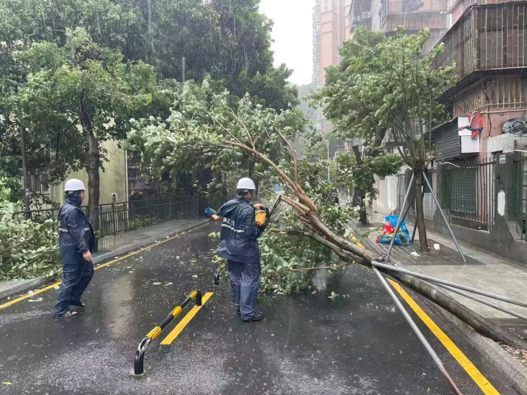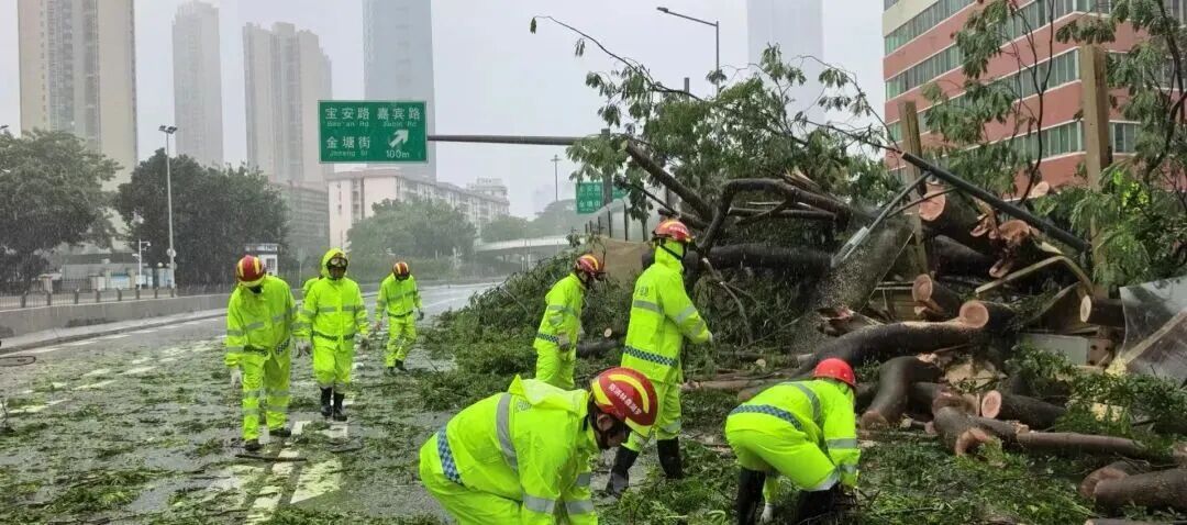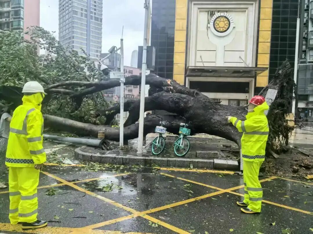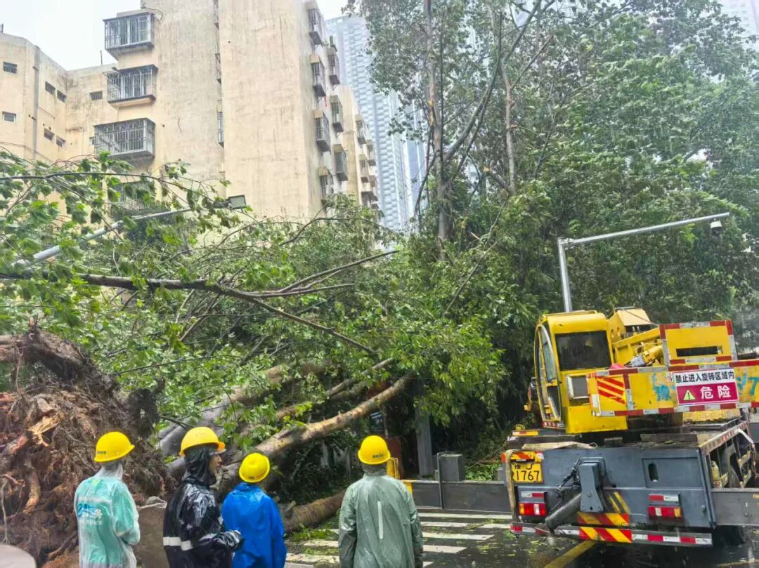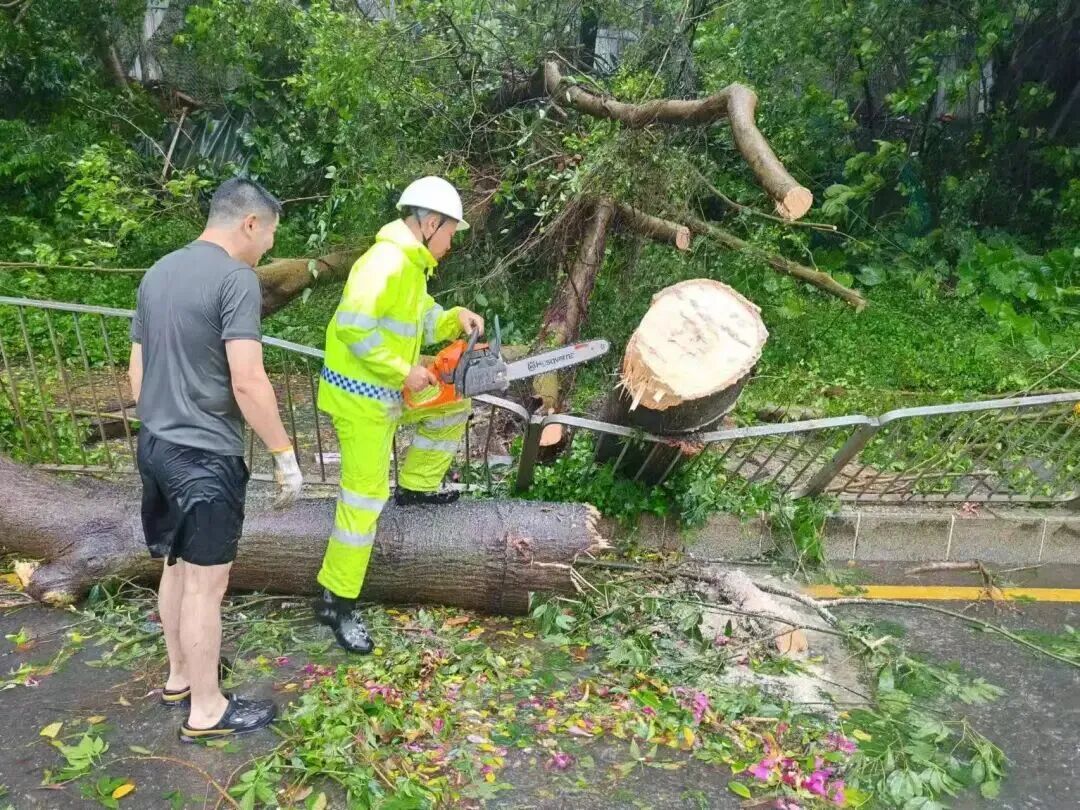 罗湖区城管、消防、森防、交警等多部门及辖区各街道全力开展倒伏树木清理。区城管局组织国艺、绿雅、粤壮等绿化管养单位使用大型机械进行快速处置,并发动深圳园林、森斯、路桥、罗湖保安公司、中建八局、中建五局、深能环保等重点企业提供人力、设备支持。